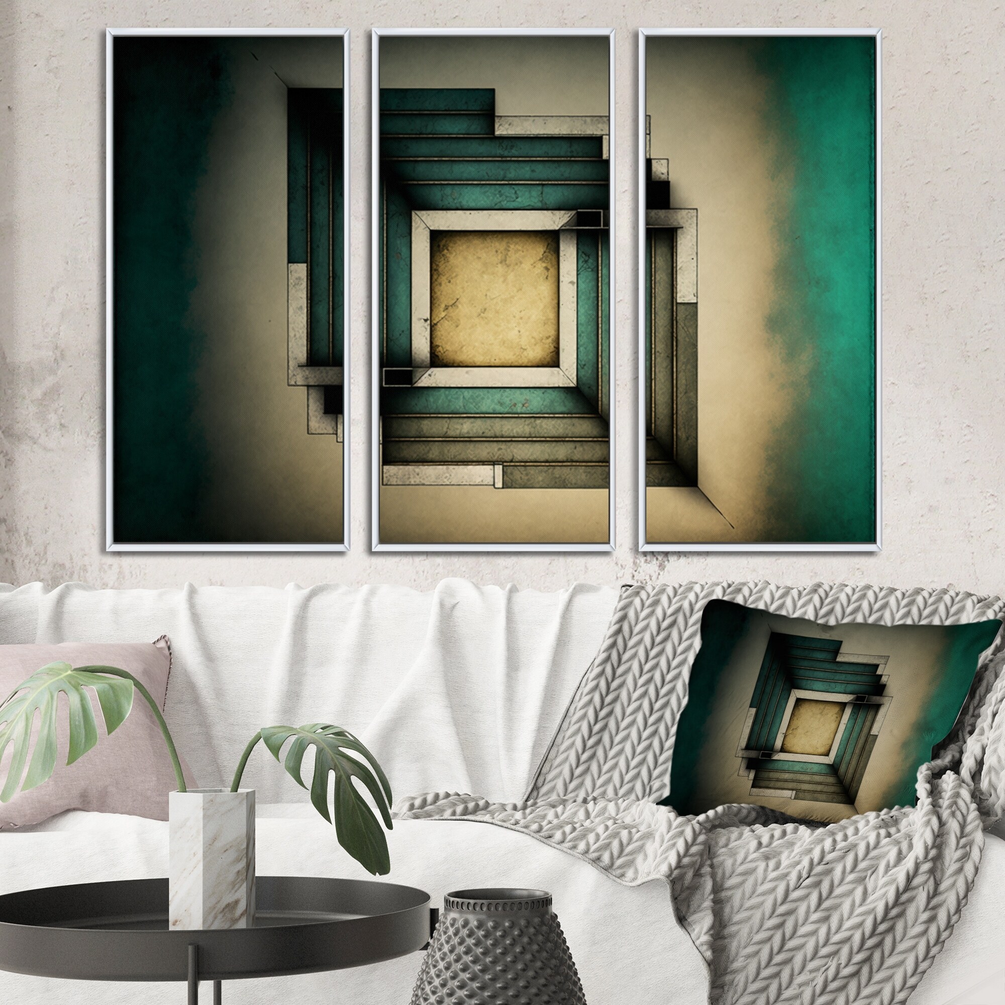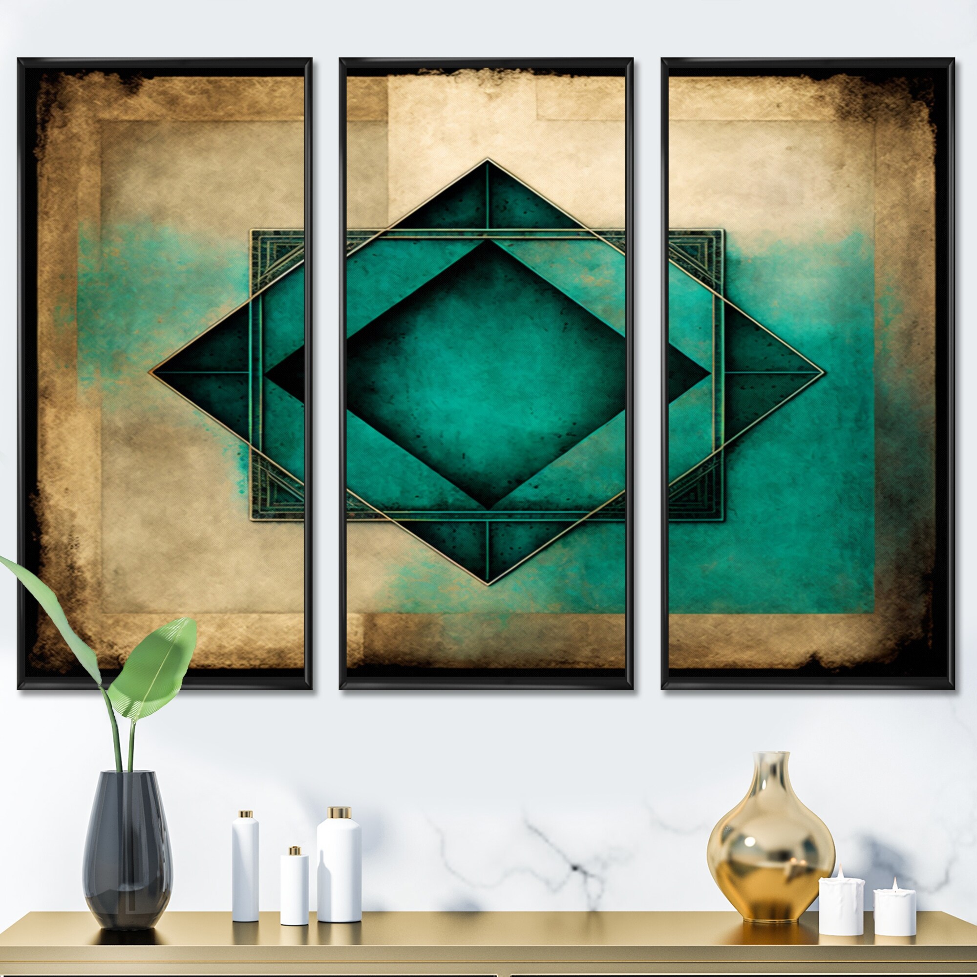 Designart "Impermanence Japanese Vintage Art III" Modern Geometric Framed Canvas Wall Art Print - 3 Panels