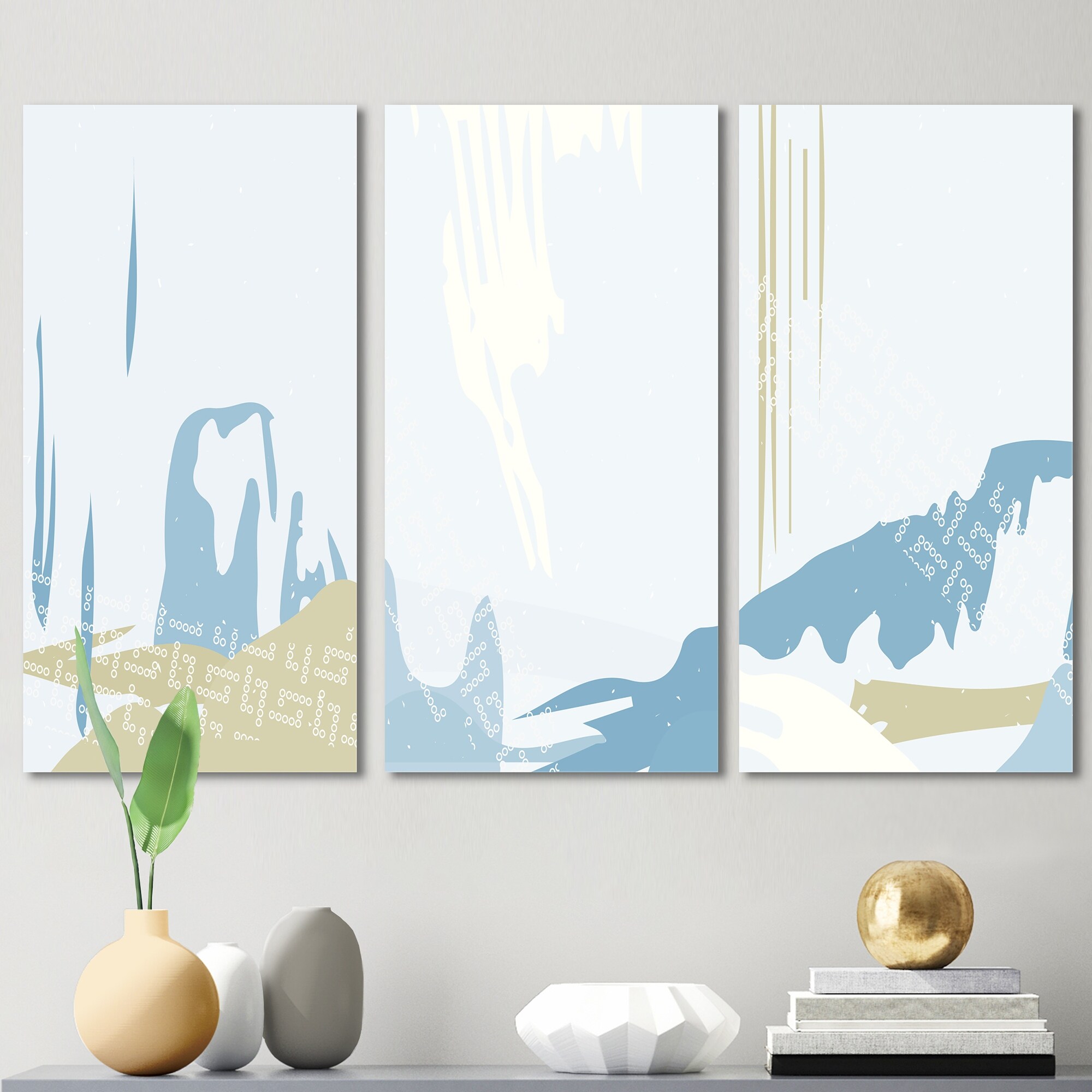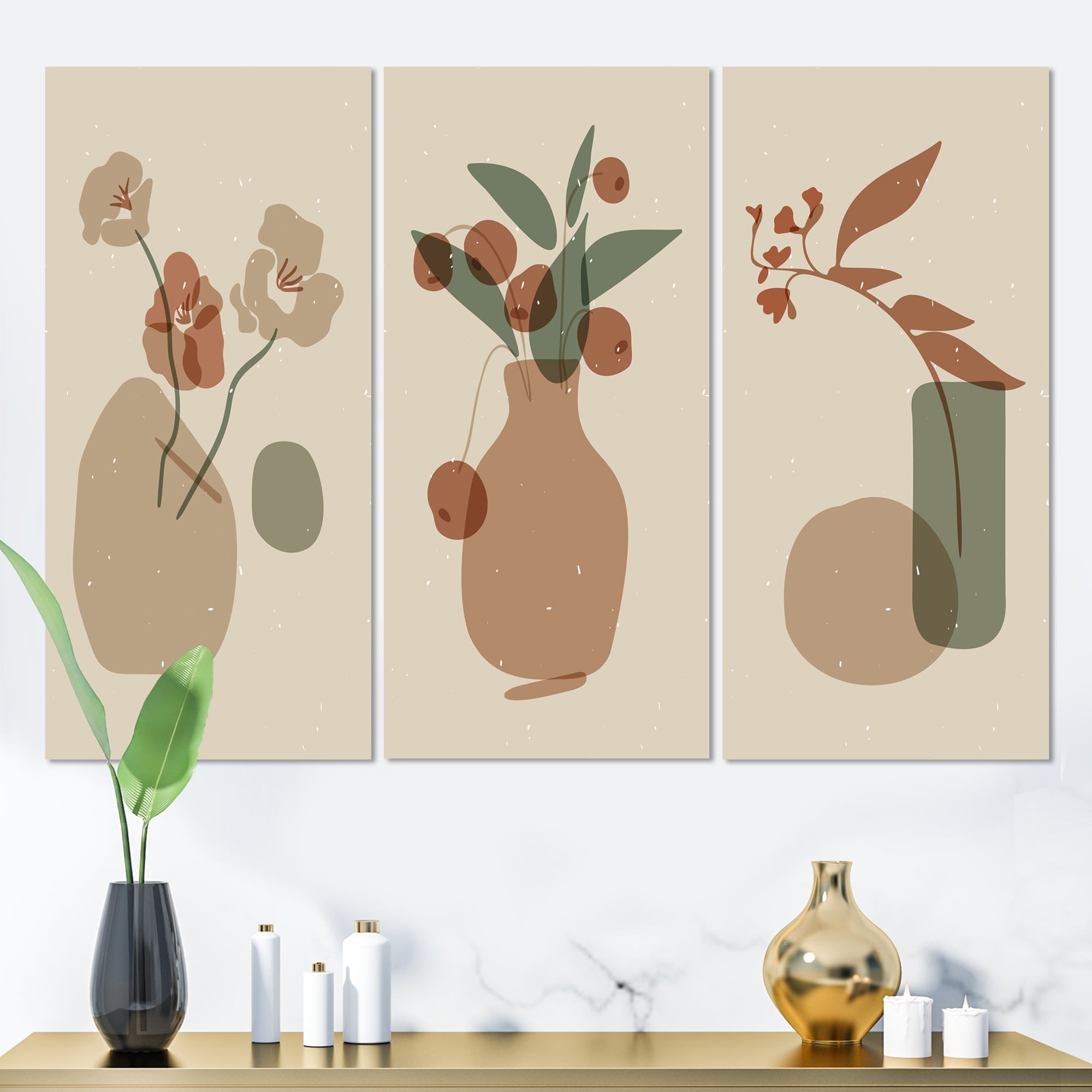Designart 'Japanese Vintage Creative Leaves V' Mid-Century Modern Art Set of 3 Pieces