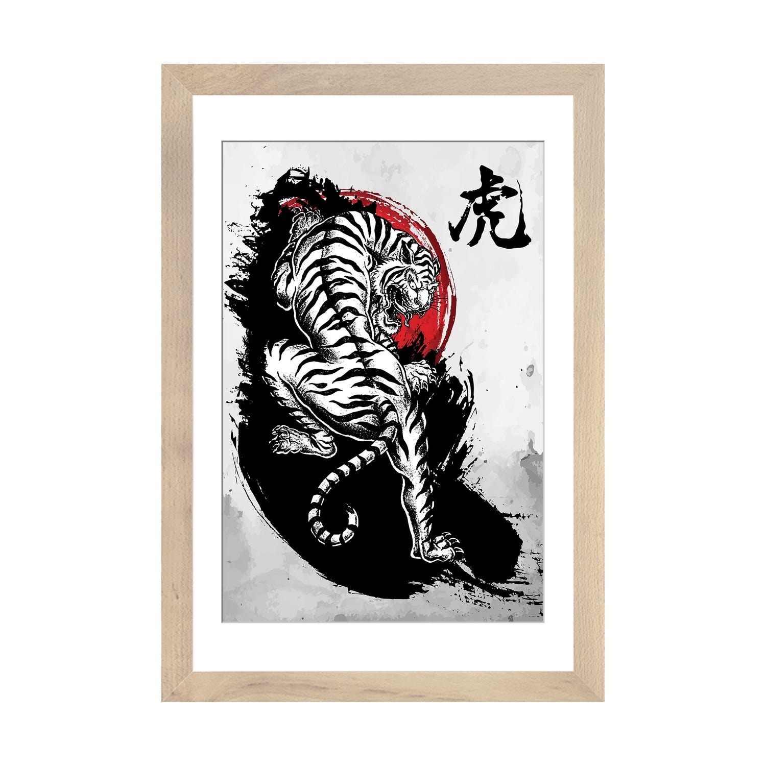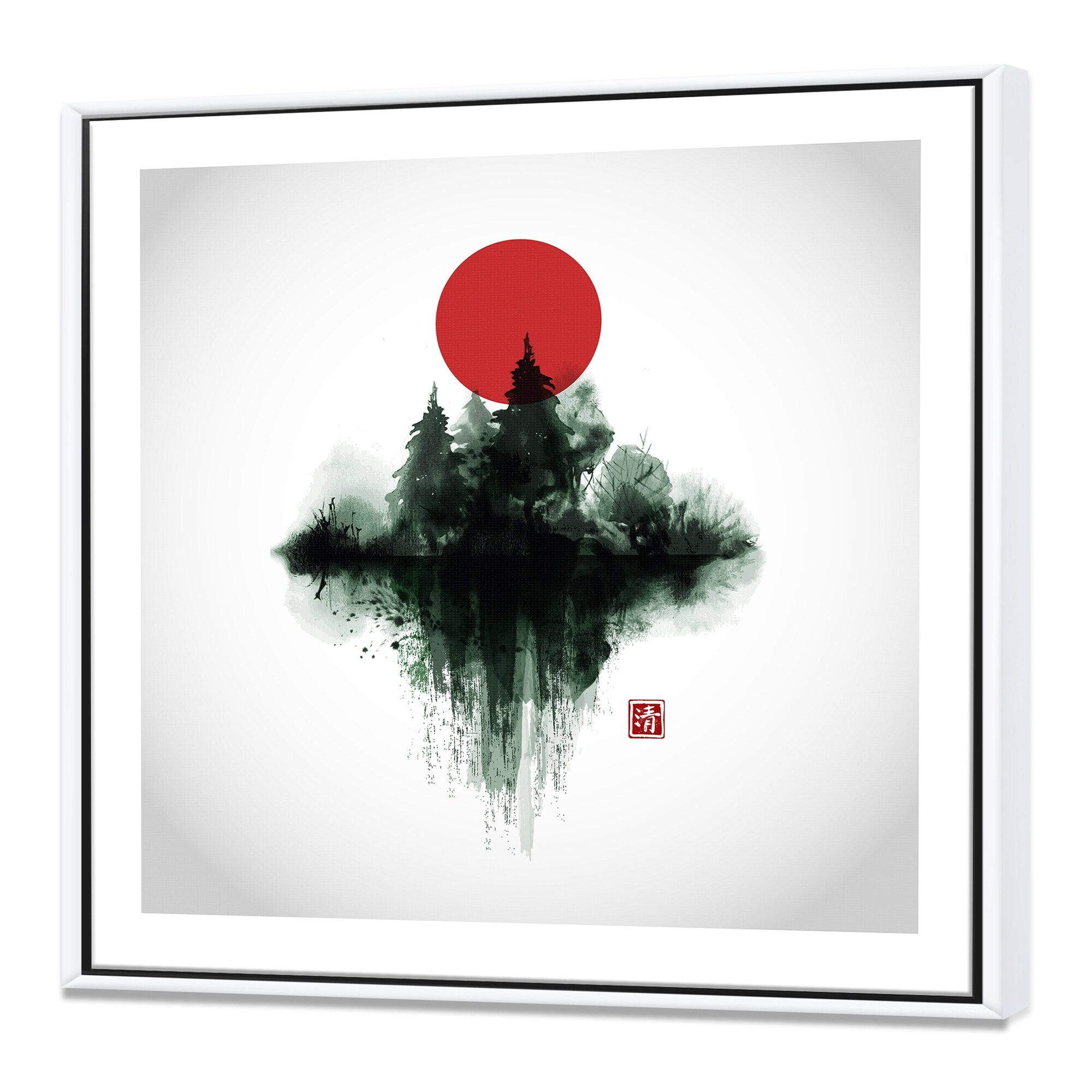 Designart "Japanese Red Moon in Traditional Sumi-e II" Traditional Framed Canvas Wall Art Print