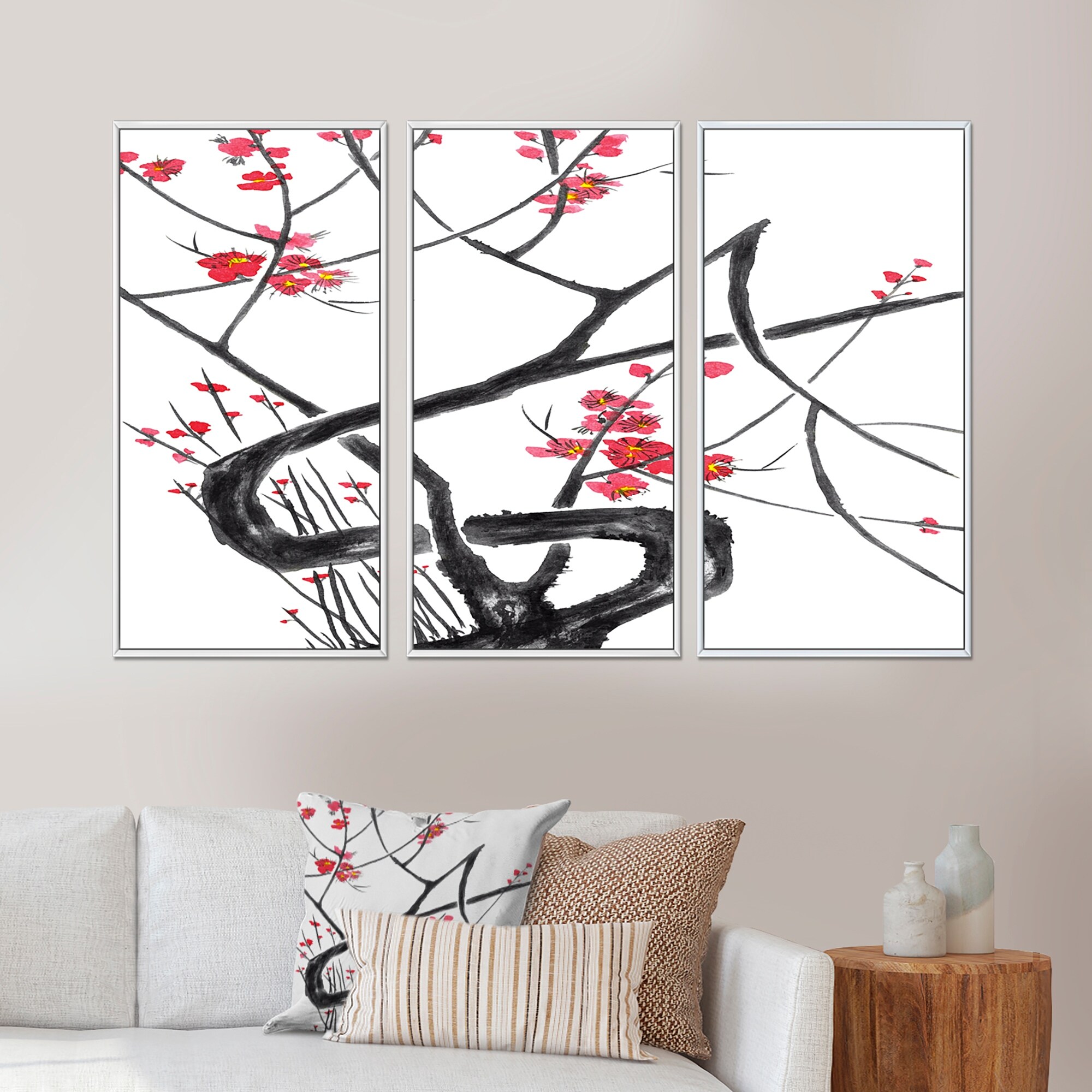 Designart "Japanese Cherry Blossom" Traditional Framed Art Set of 3 - 4 Colors of Frames