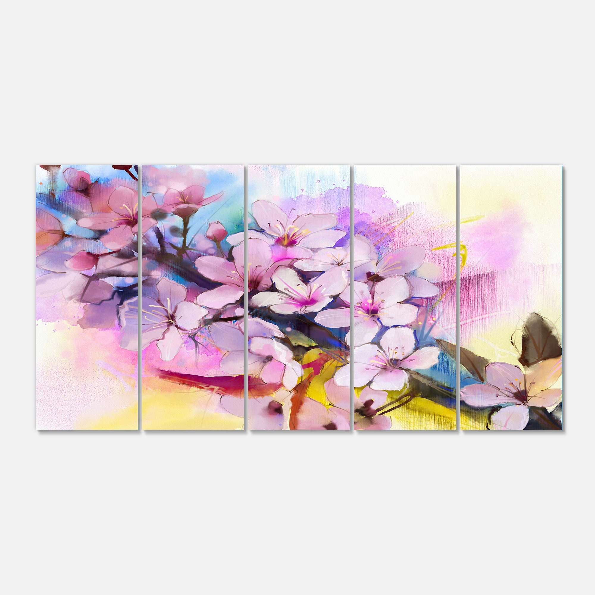 Designart 'Japanese Cherry Blossoms Watercolor' Flower Glossy Metal Wall Art Artwork