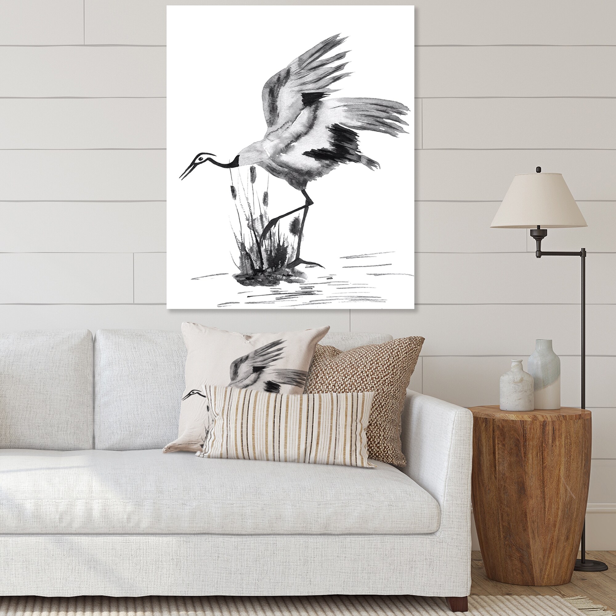 Designart "Japanese Crane Bird" Traditional Canvas Wall Art Print