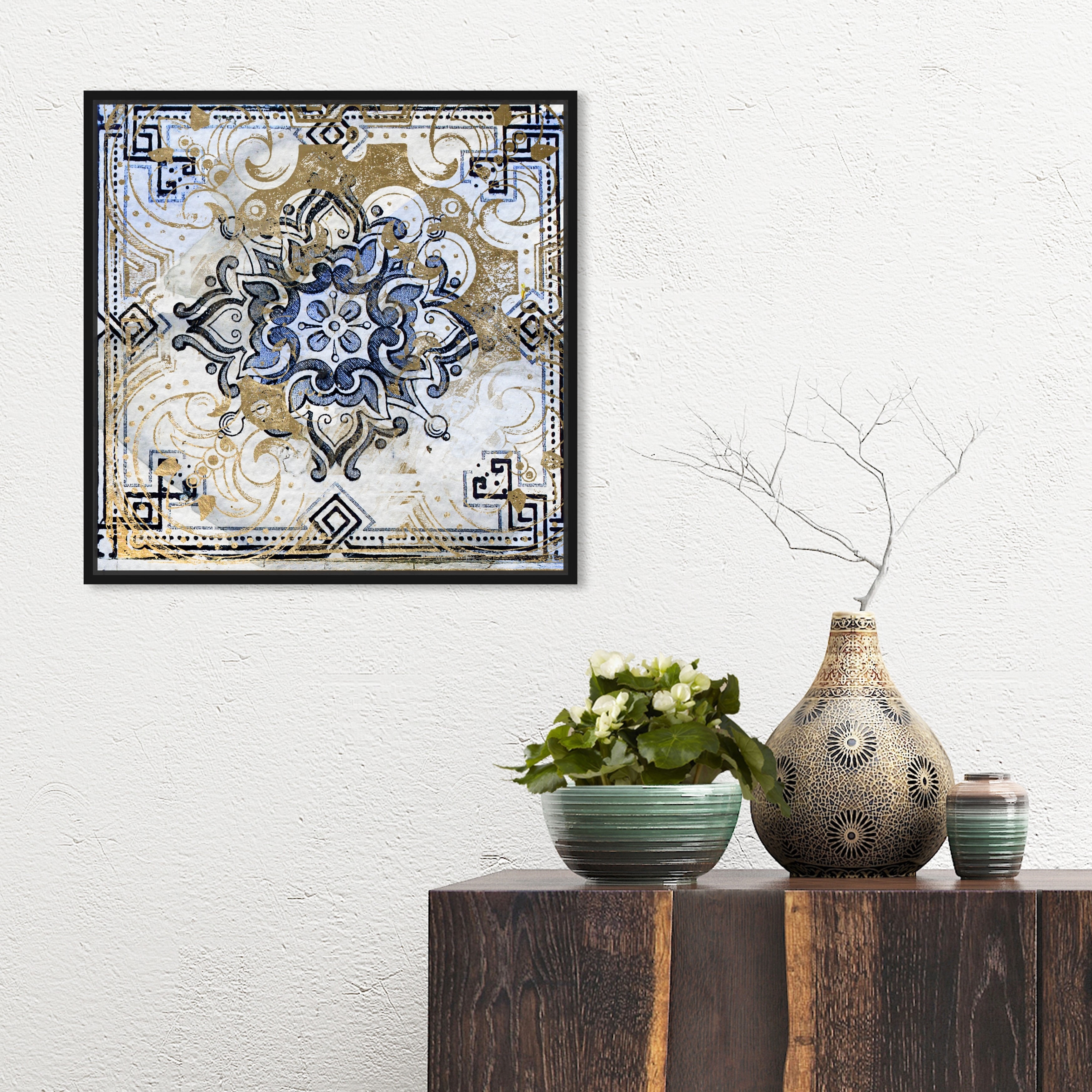 Oliver Gal Abstract Wall Art Framed Canvas Prints 'Azulia II' Patterns - Blue, Gold
