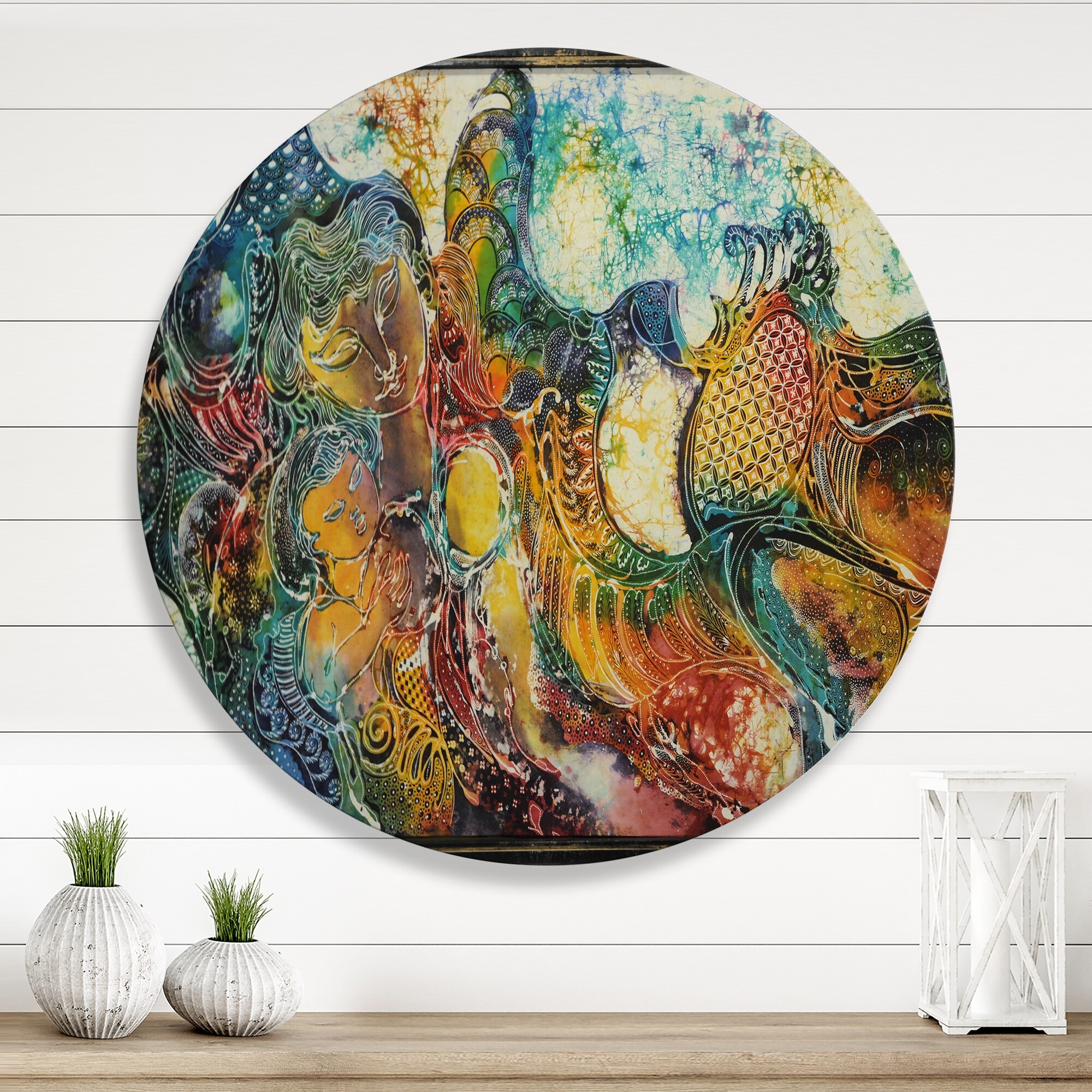 Designart 'Mother With Child in Batik' Modern Metal Circle Wall Art
