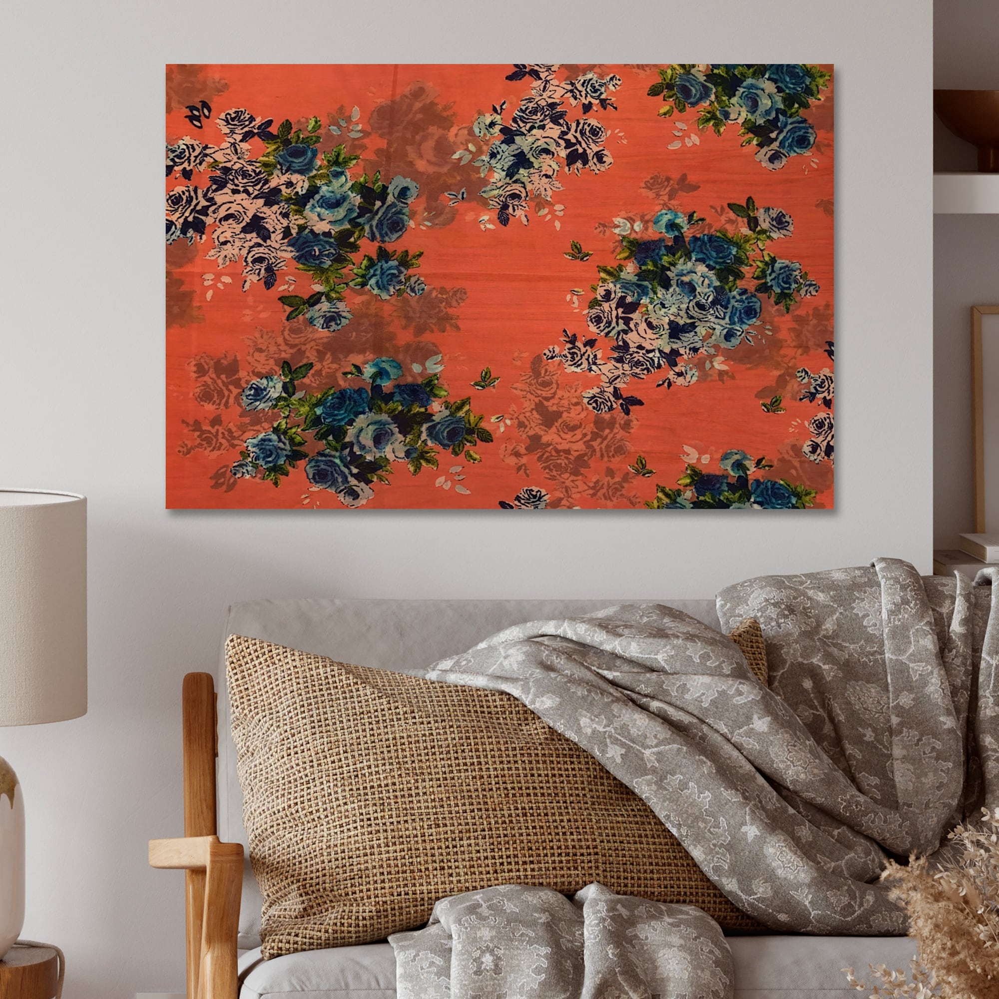Designart 'Colorful Flowers on Batik' Traditional Wood Wall Art - Natural Pine Wood