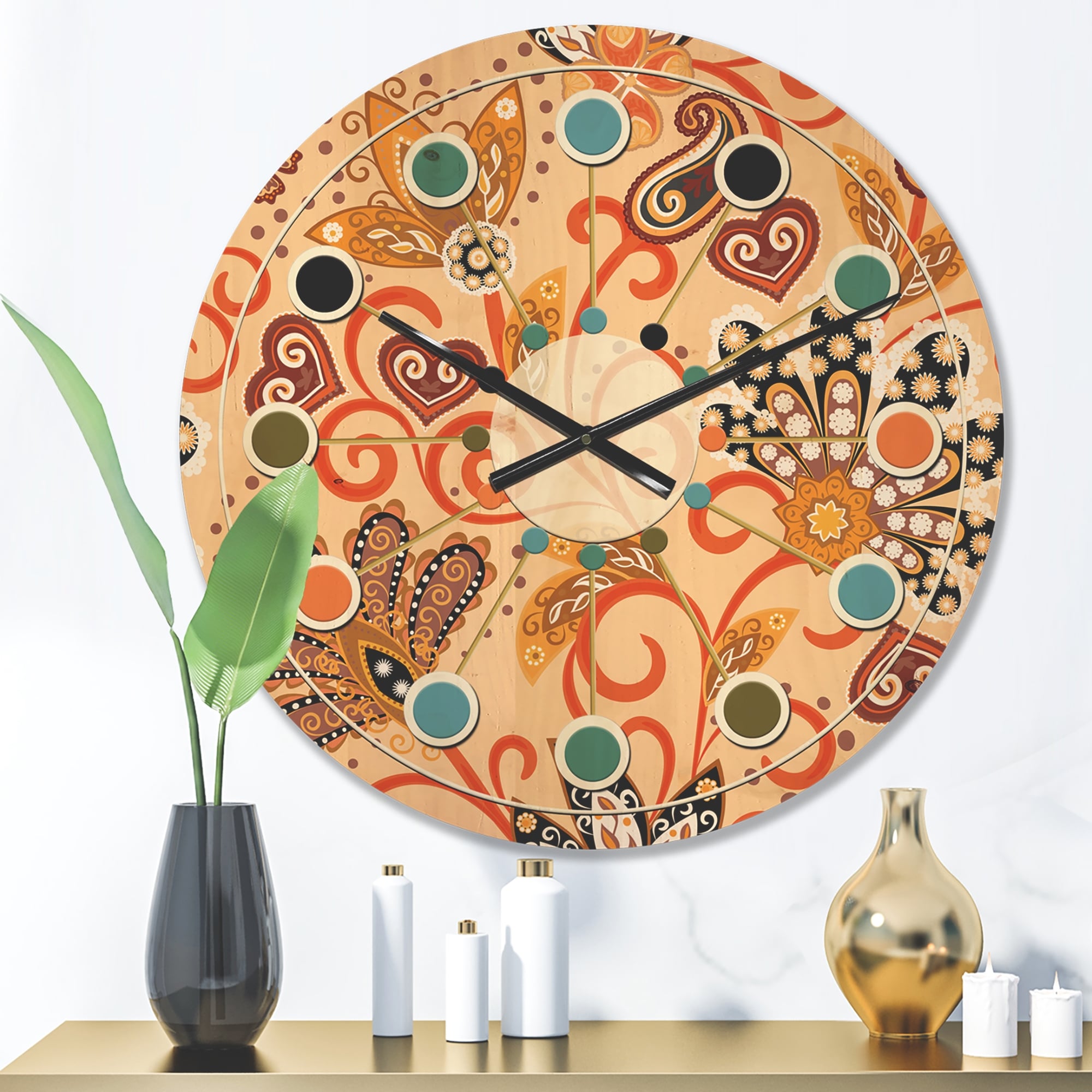 Designart 'Retro Indian Floral Batik III' Mid-Century Modern Wood Wall Clock