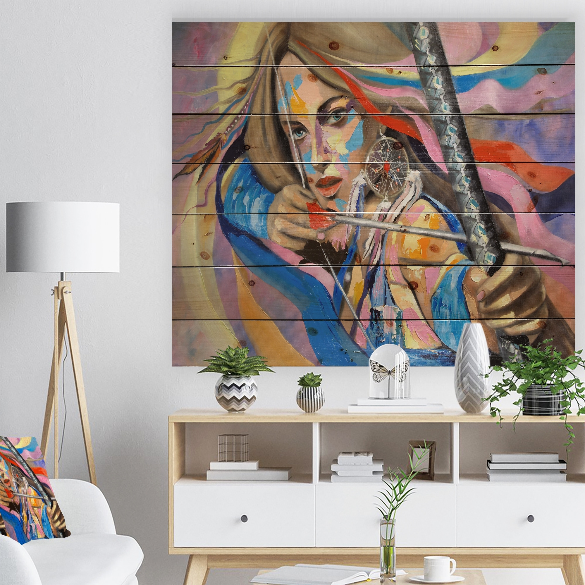 Designart 'Woman Portrait Dream Catcher' Glamour Print on Natural Pine Wood - Multi-color