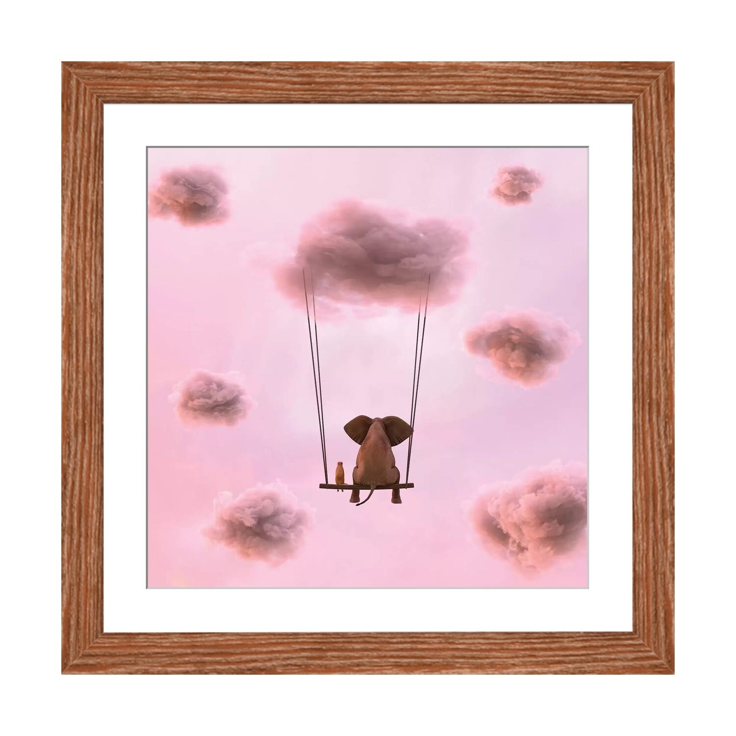 iCanvas "Elephant And Dog Look At the Big Pink Cloud III" by Mike Kiev Framed Canvas Print