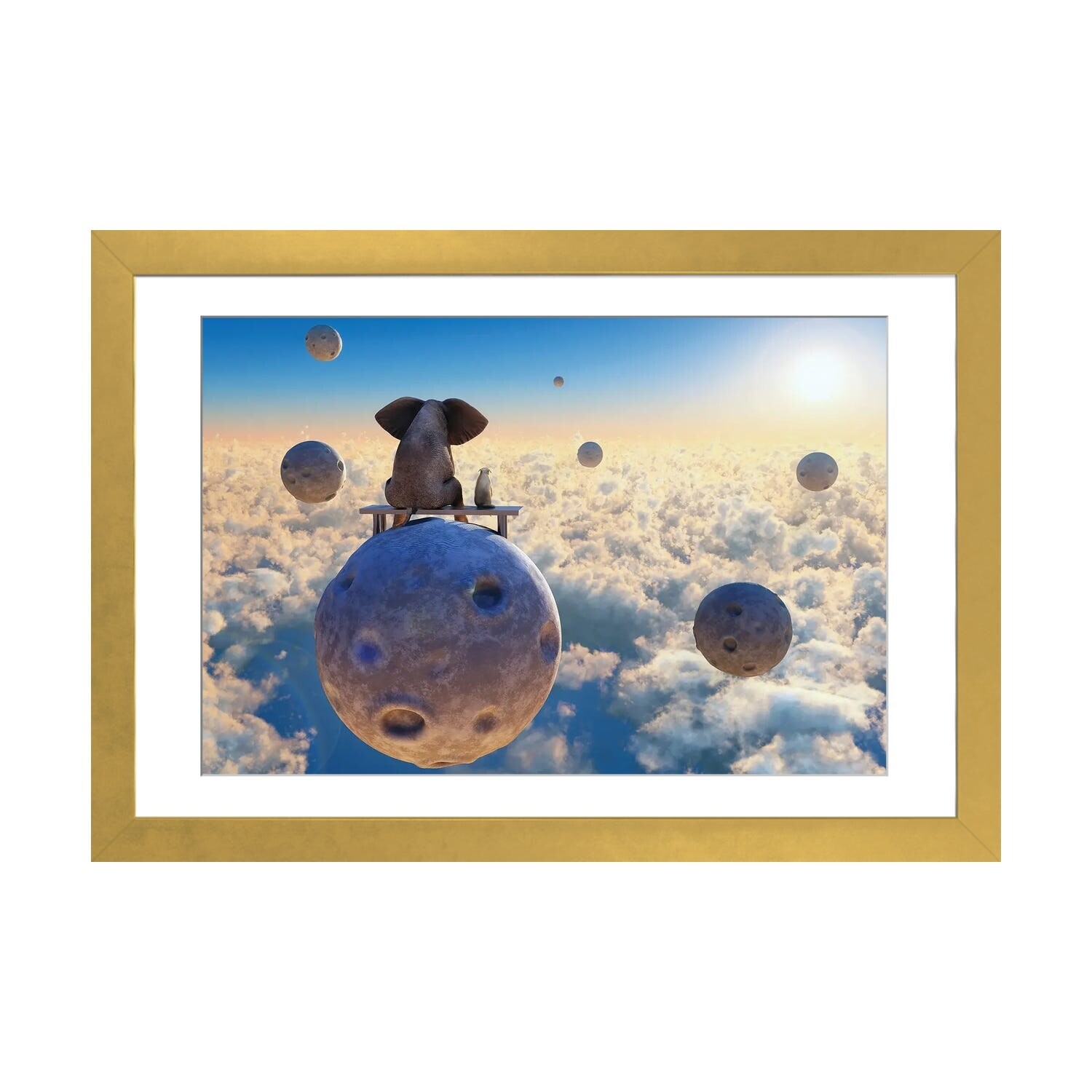 iCanvas "Elephant And Dog Flying on A Small Planet" by Mike Kiev Framed