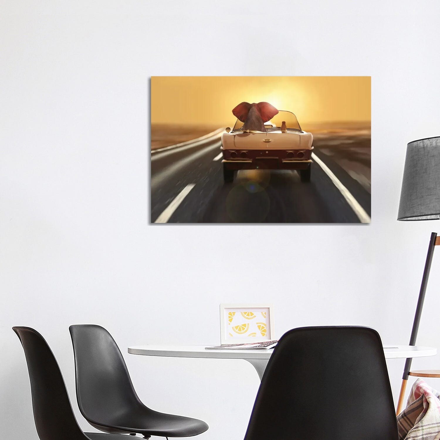 iCanvas "elephant and dog travel by car" by Mike Kiev Canvas Print
