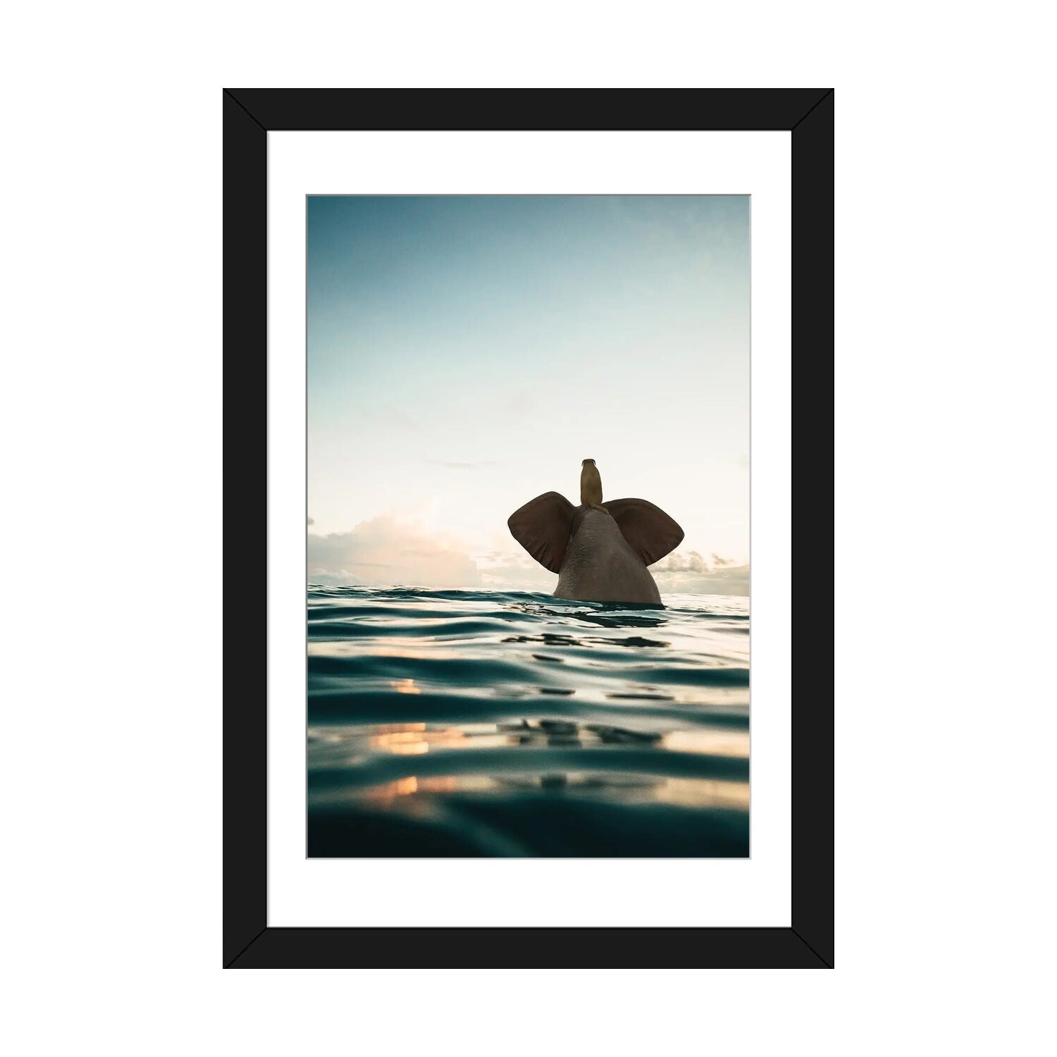 iCanvas "Elephant And Dog Swim in the Sea" by Mike Kiev