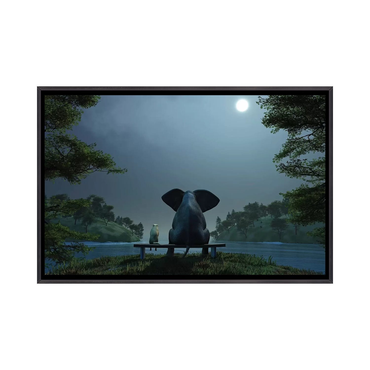 iCanvas "Elephant And Dog At Summer Night" by Mike Kiev Framed