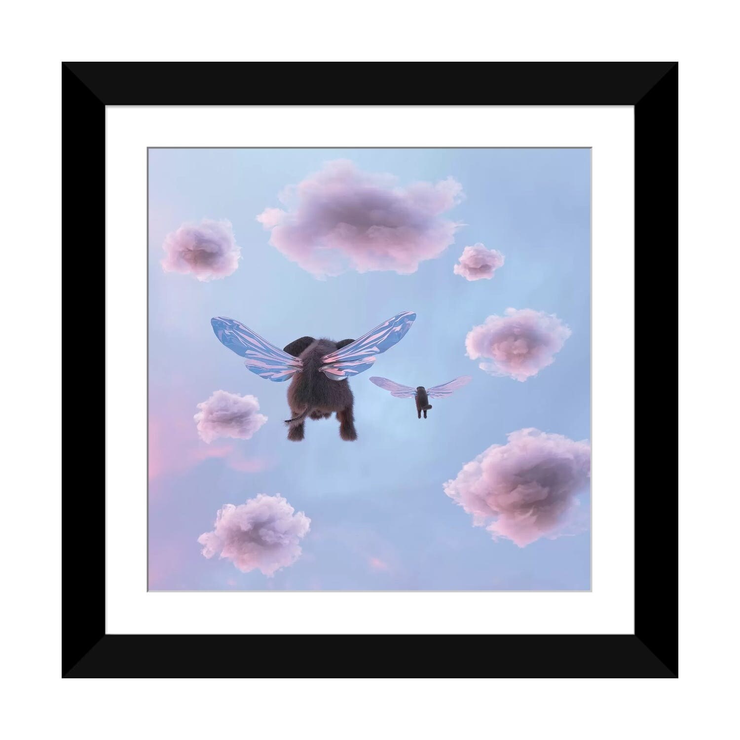 iCanvas "Elephant And Dog Are Flying on A Cloud" by Mike Kiev Framed