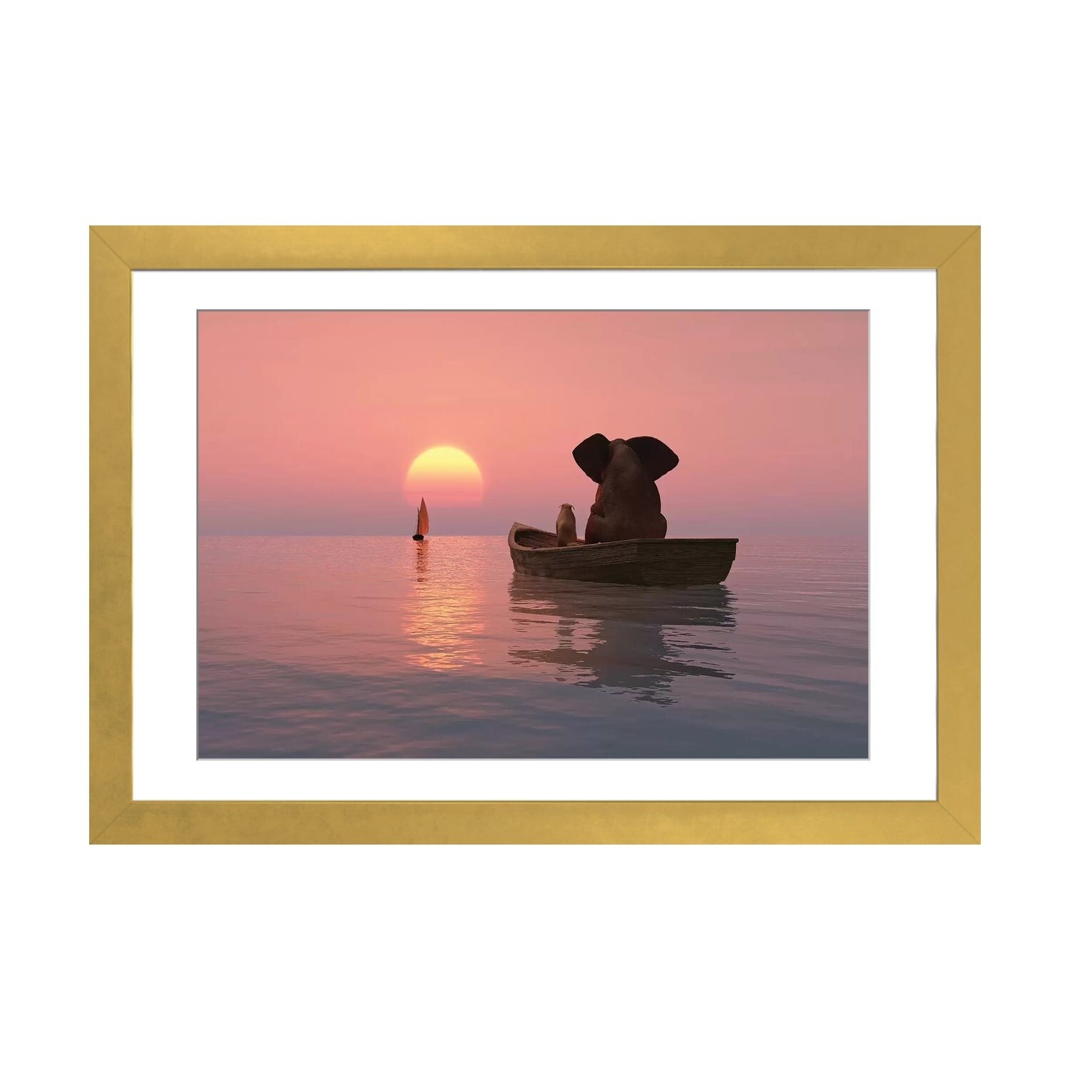 iCanvas "Elephant And Dog Are Floating in A Boat At Sunset" by Mike Kiev PFA