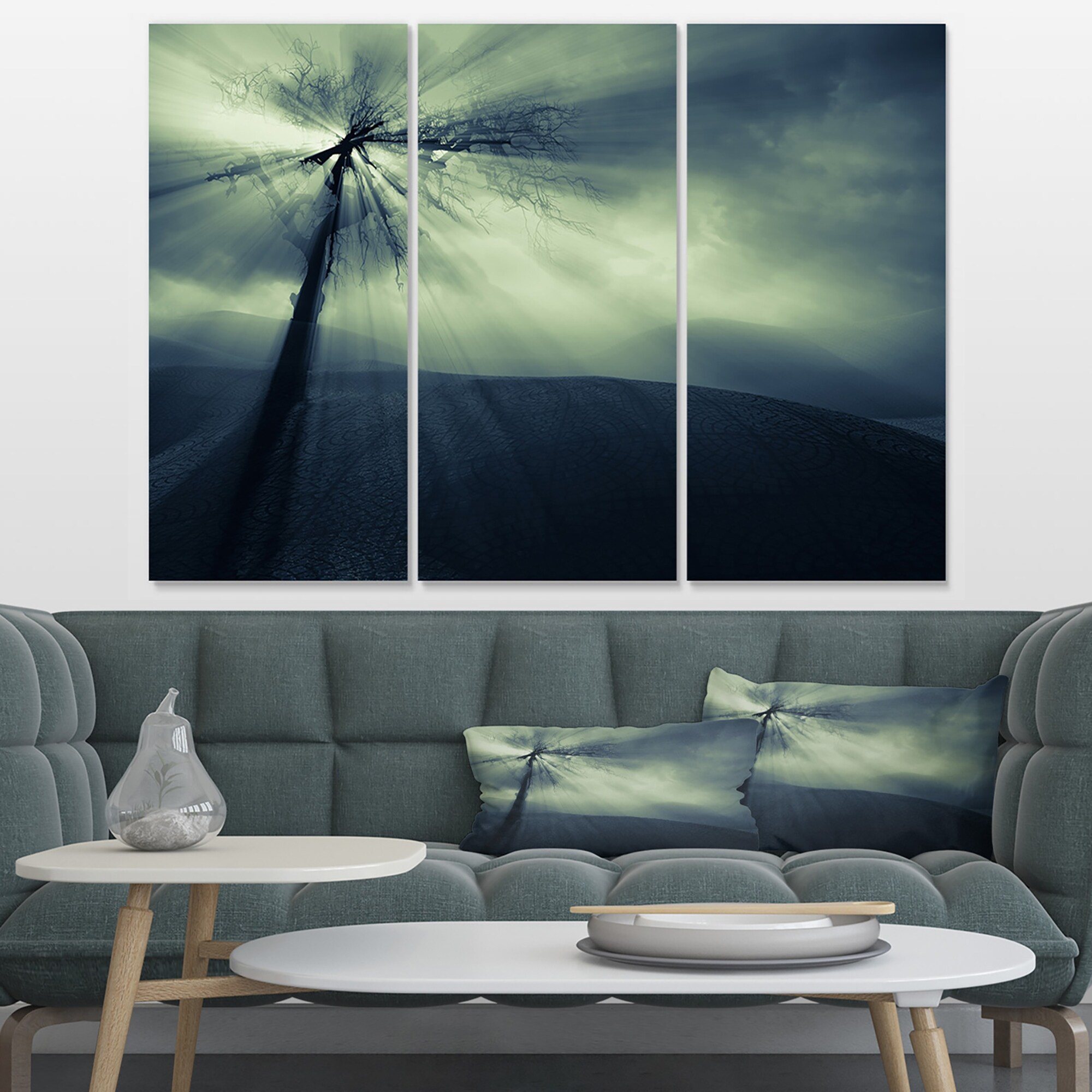 Designart "Dead Tree in the Mysterious Land" Modern Seascape Canvas Artwork - 36x28 - 3 Panels