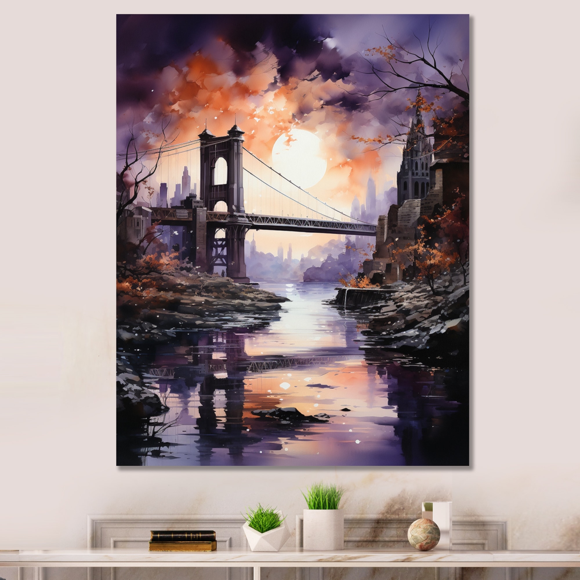 Designart "Coral Bridge Luminous Crossing II" Bridges Canvas Art Print