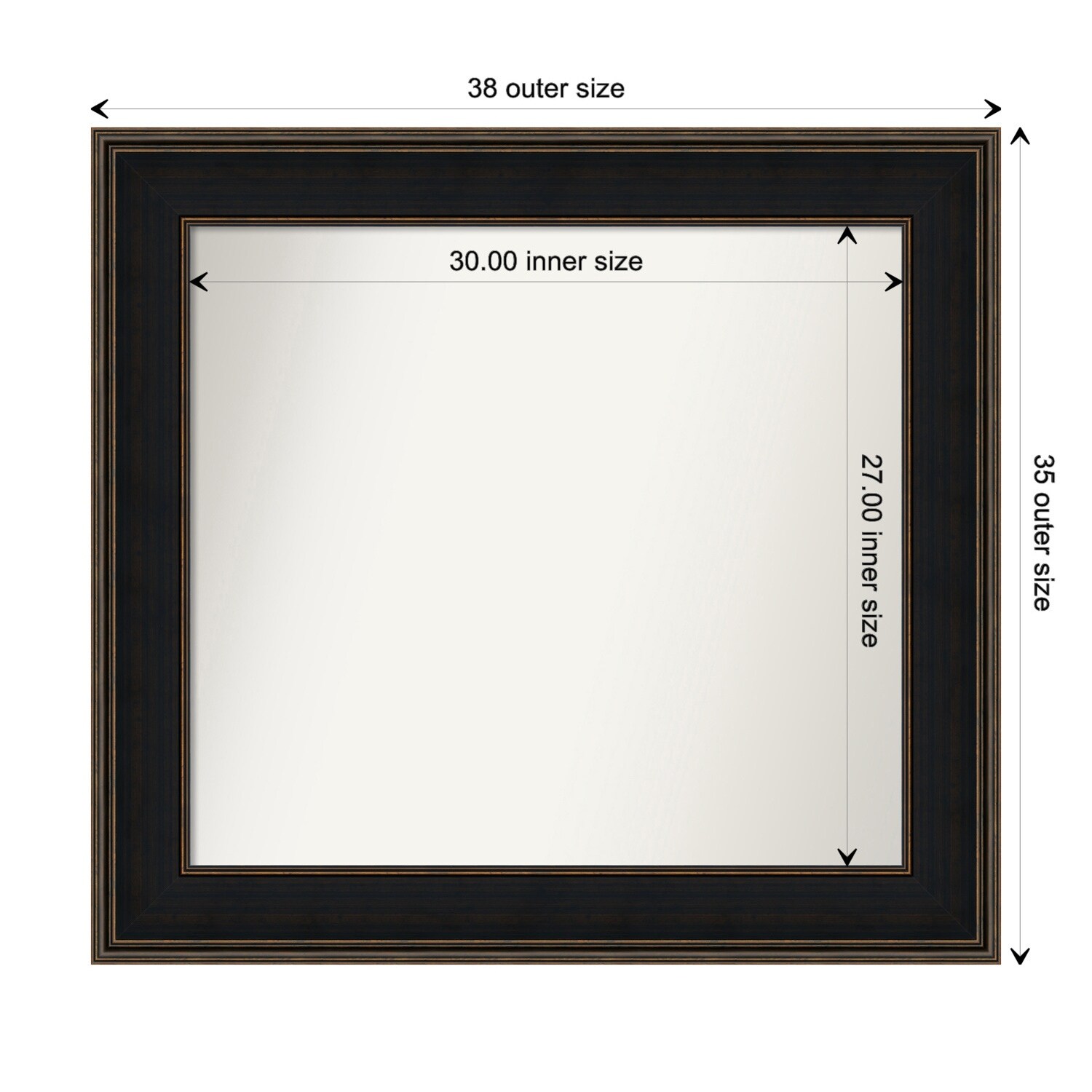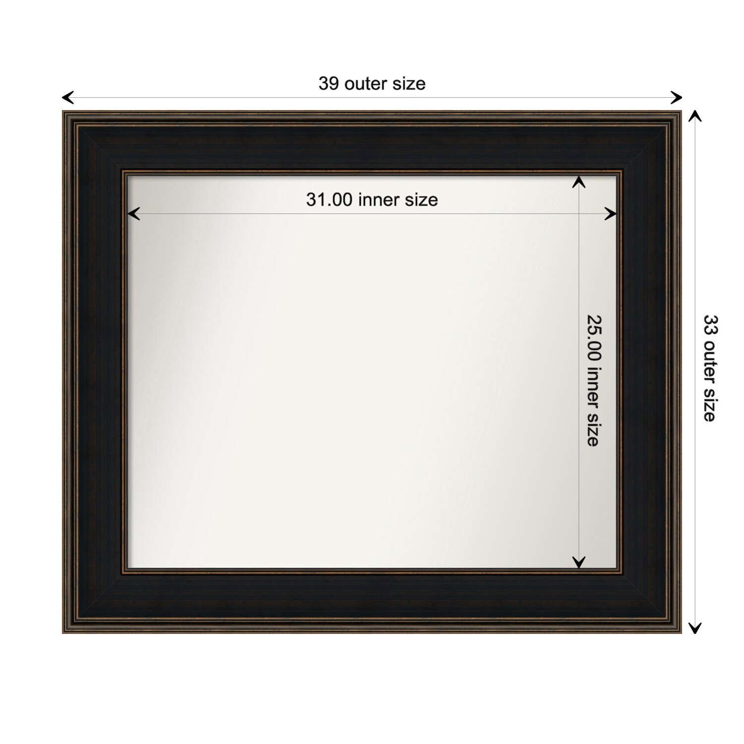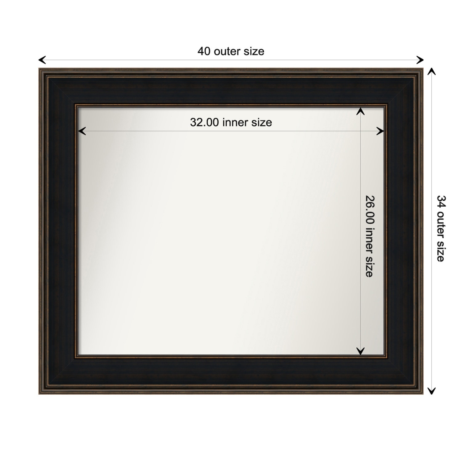 Beveled Wood Bathroom Wall Mirror - Manhattan Bronze Frame - Outer Size: 45 x 35 in