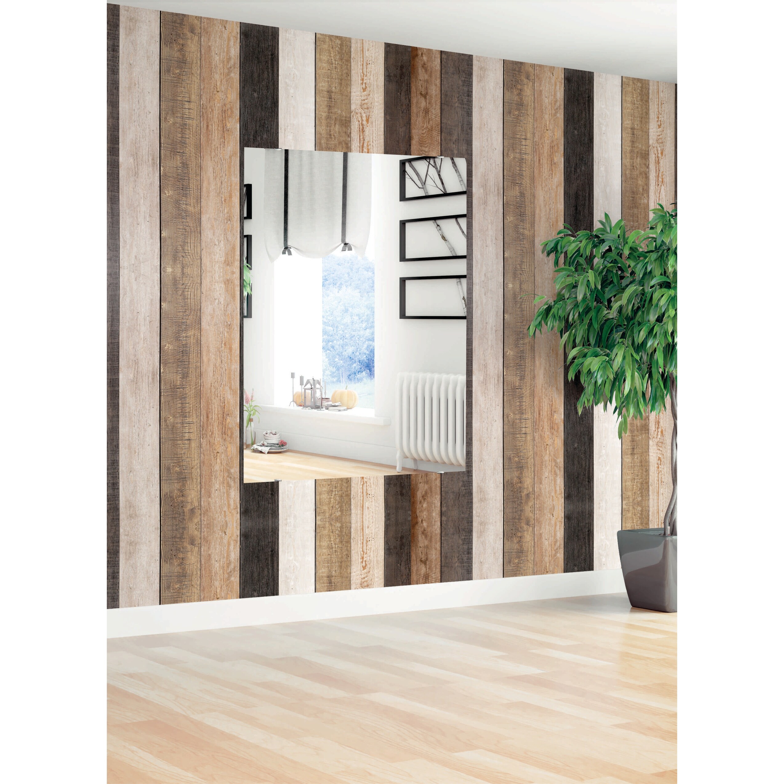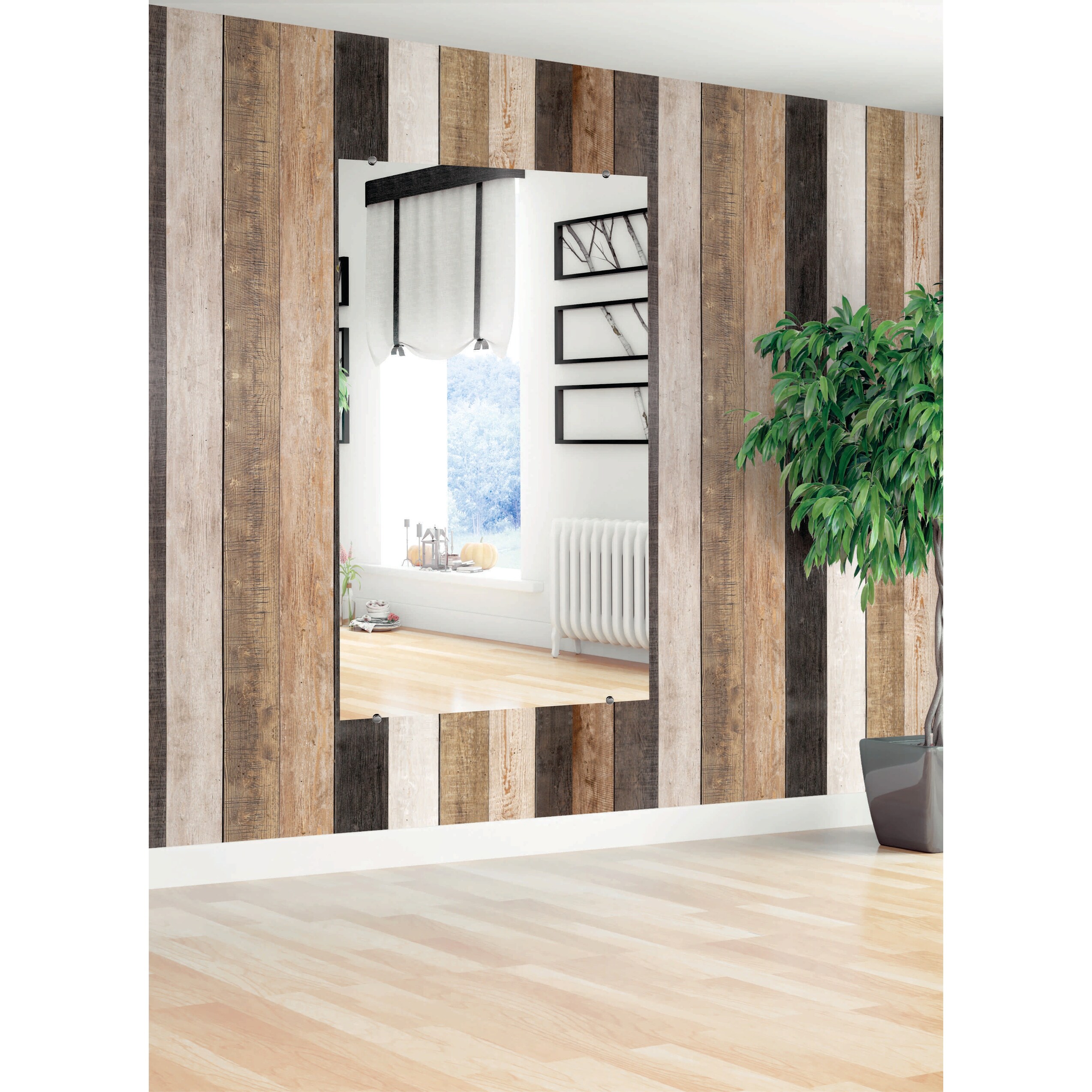Modern Rustic Weathered Grey Wooden Wall Mirror