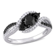 Miadora 10k White Gold 1 1/4ct TDW Black and White Diamond 3-Stone Plus Ring