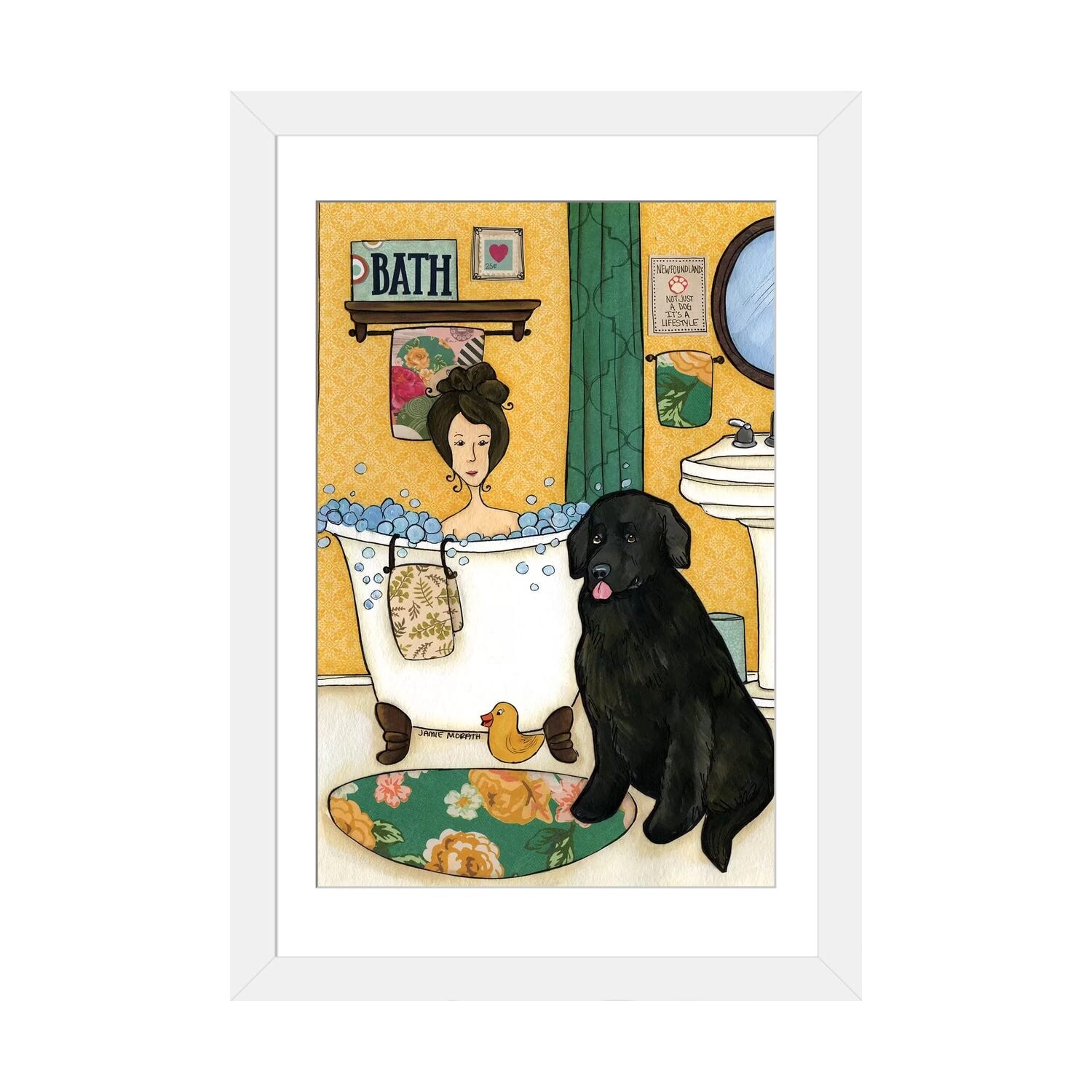 iCanvas "Dogs In the Tub Series, Black Lab in Bathtub" by Hippie Hound Studios Framed