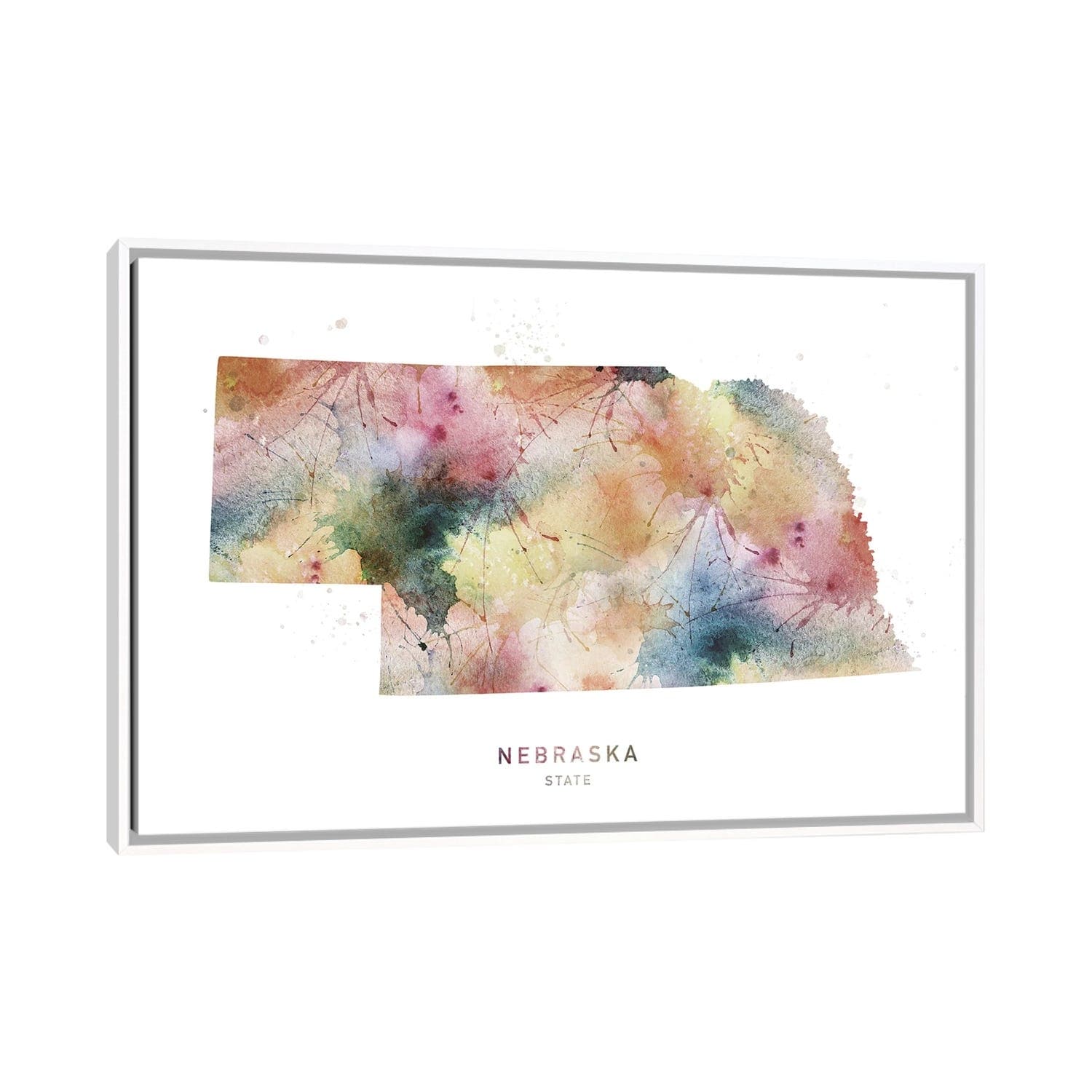 iCanvas "Nebraska Watercolor State Map" by WallDecorAddict Framed Canvas Print