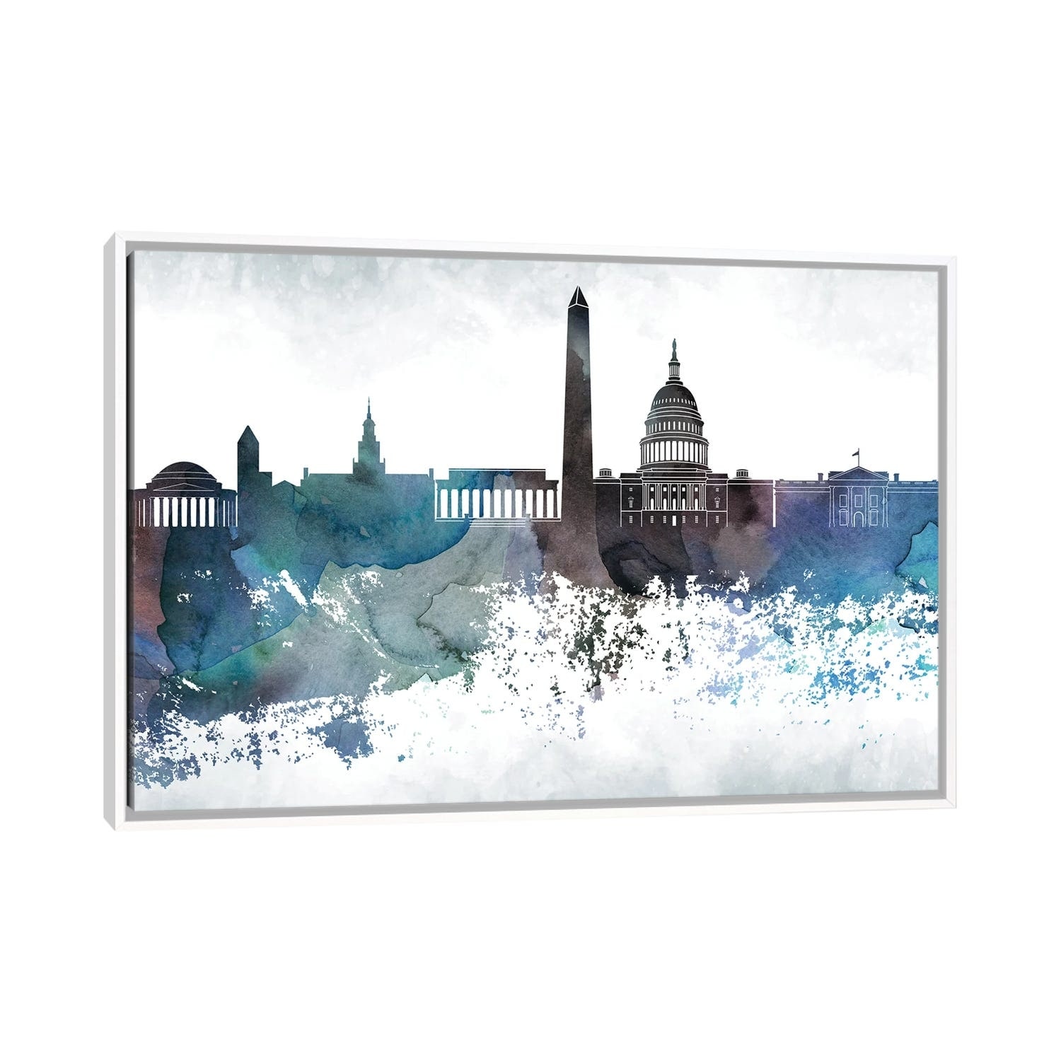 iCanvas "Washington Bluish Skylines" by WallDecorAddict Framed Canvas Print