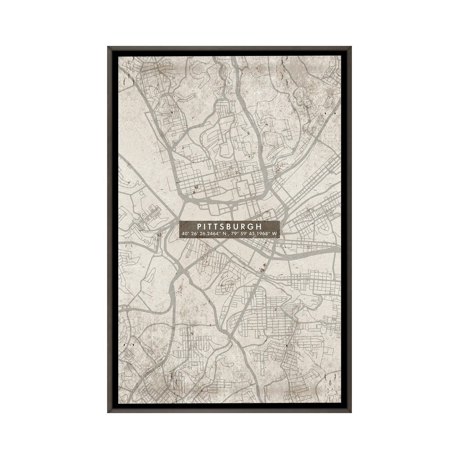 iCanvas "Pittsburgh City Map Abstract" by WallDecorAddict Framed