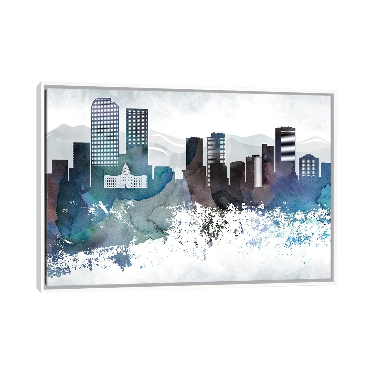 iCanvas "Denver Bluish Skyline" by WallDecorAddict Framed Canvas Print