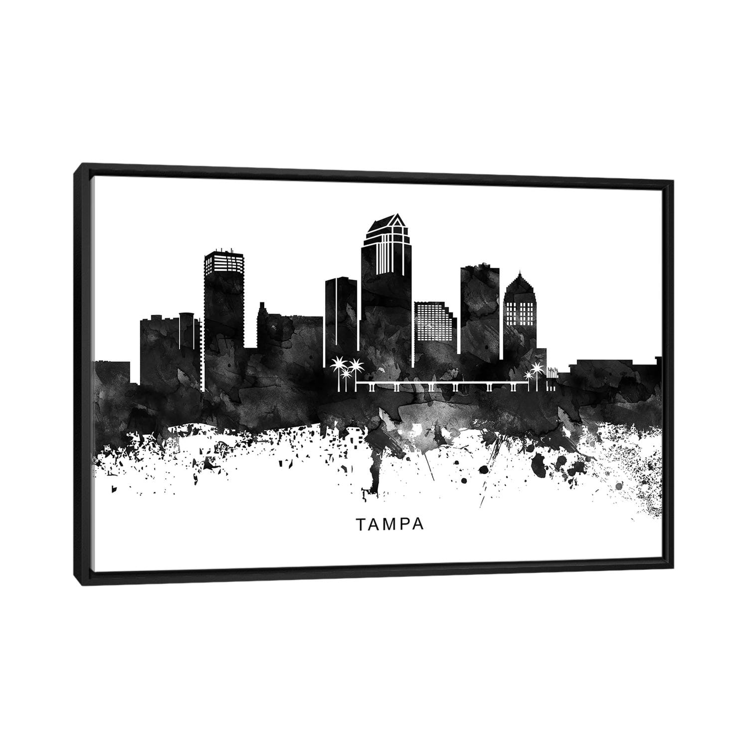 iCanvas "Tampa Skyline Black & White" by WallDecorAddict Framed Canvas Print