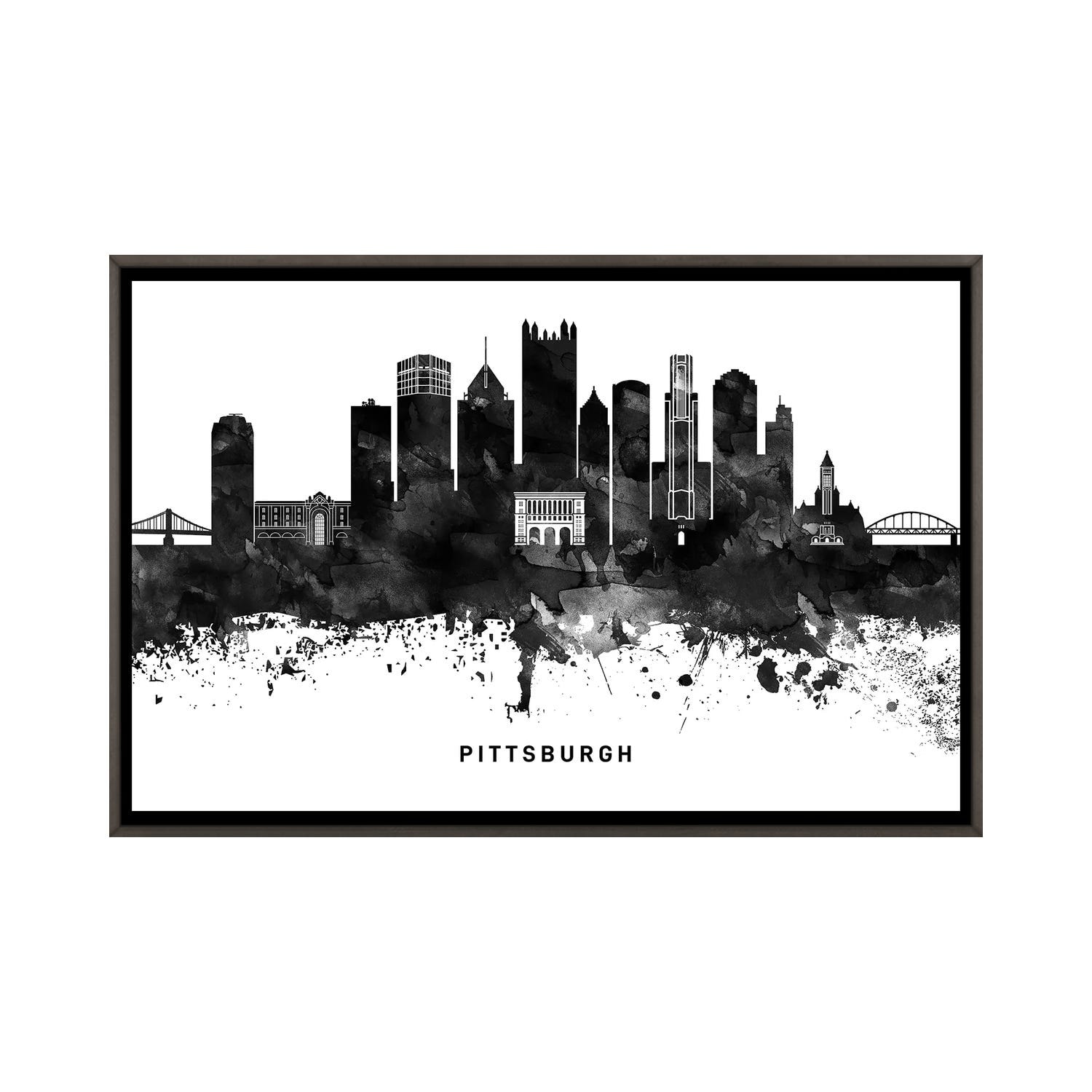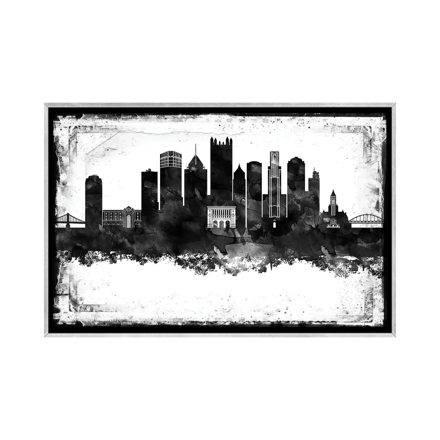 iCanvas "Pittsburgh Black And White Framed Skylines" by WallDecorAddict Framed