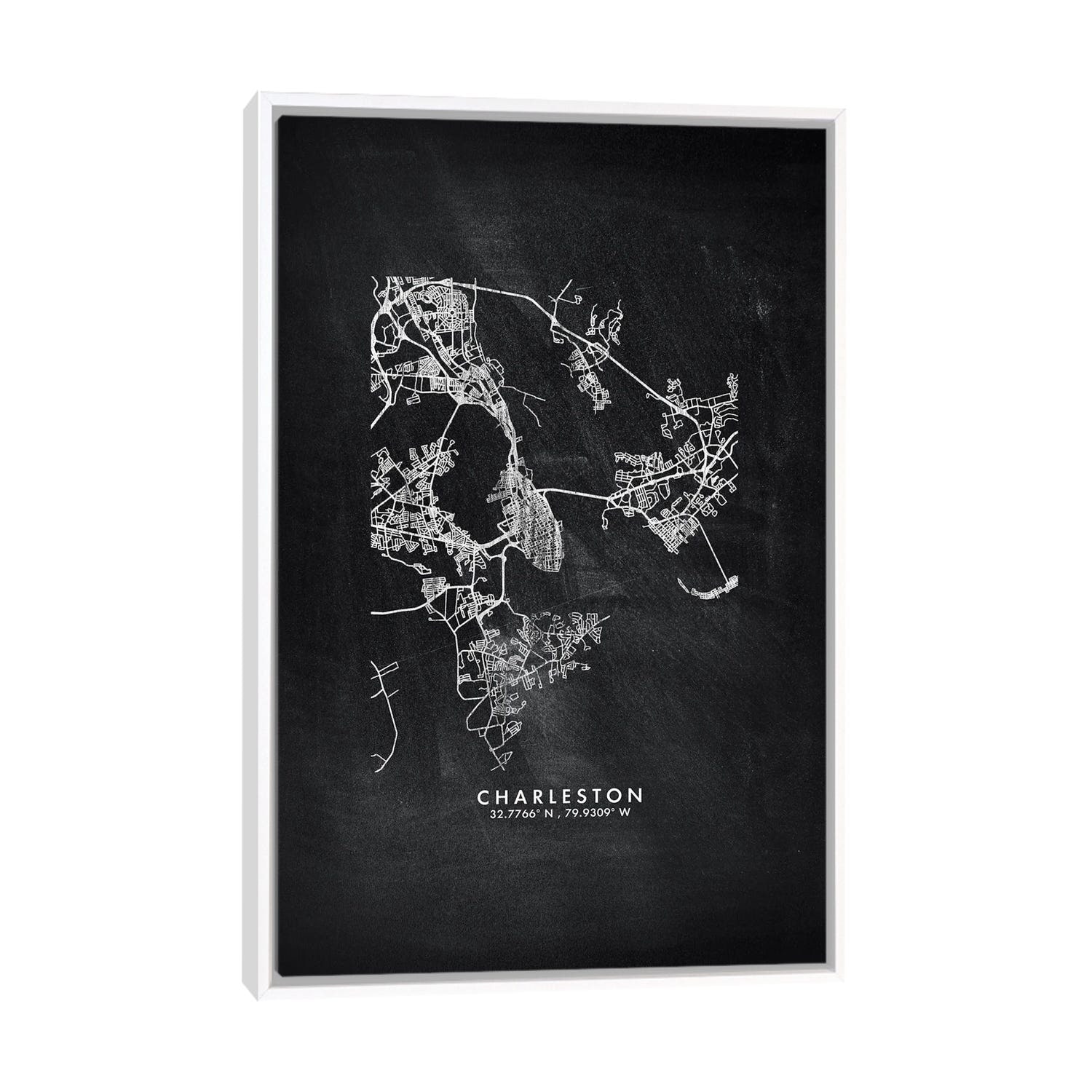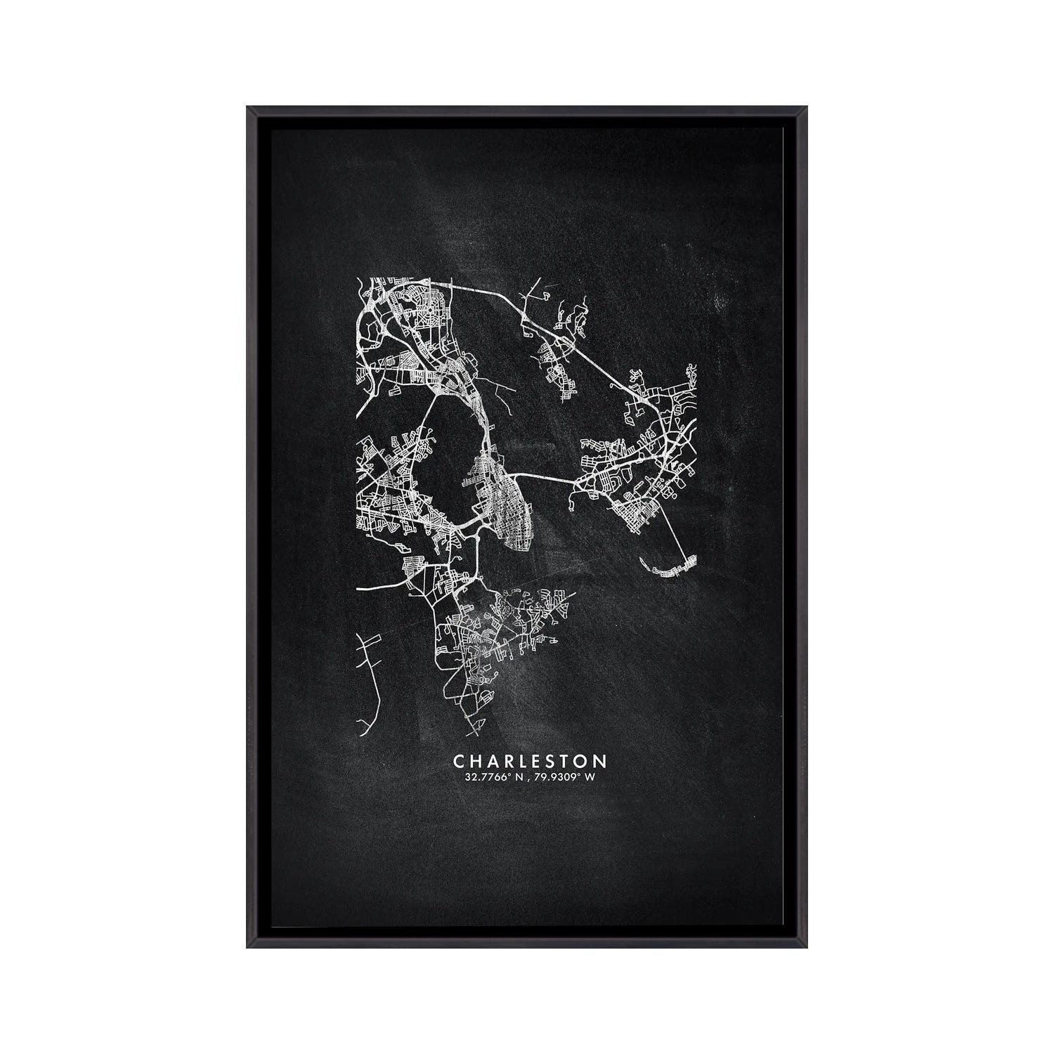 iCanvas "Charleston City Map Chalkboard Style" by WallDecorAddict Framed