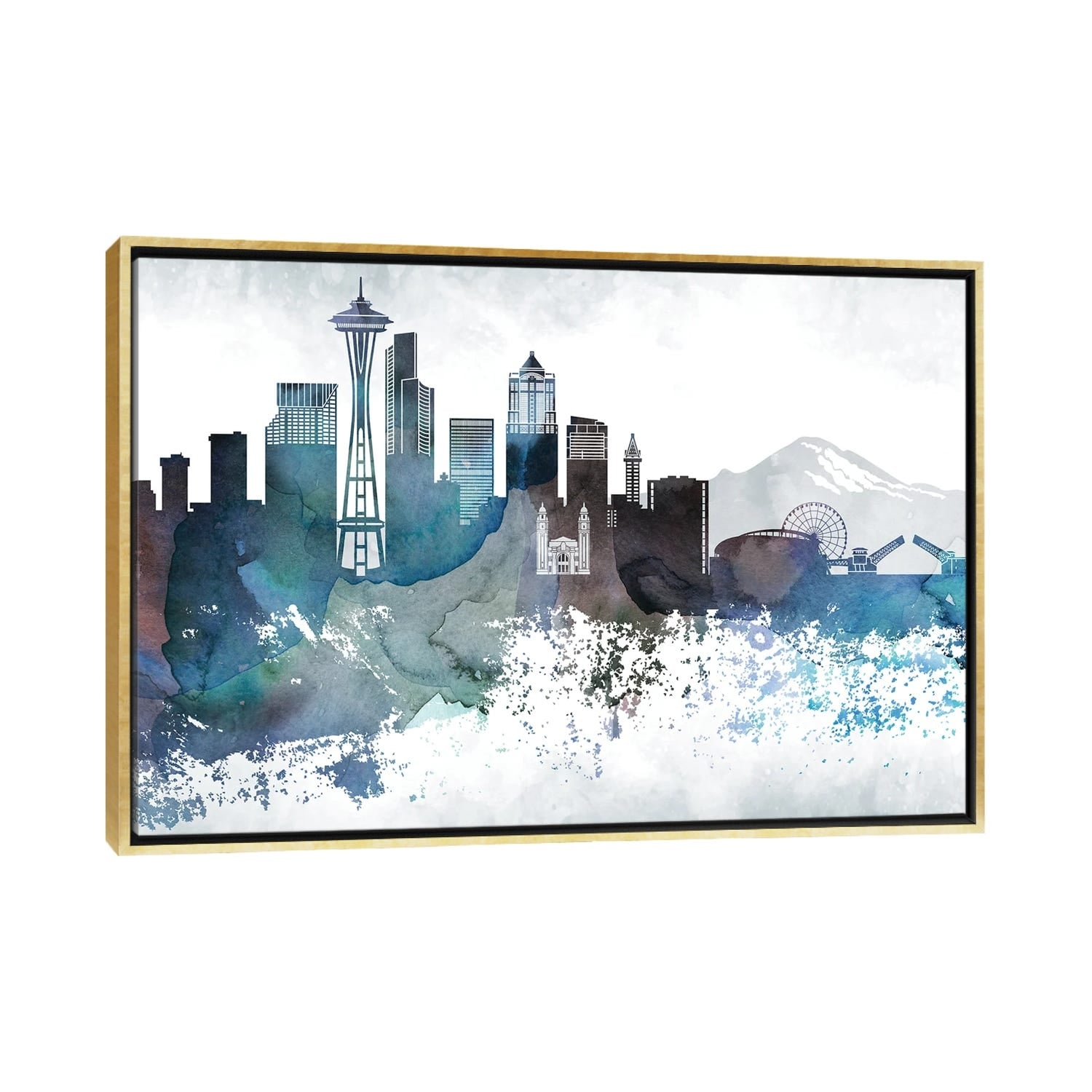 iCanvas "Seattle Bluish Skylines" by WallDecorAddict Framed Canvas Print