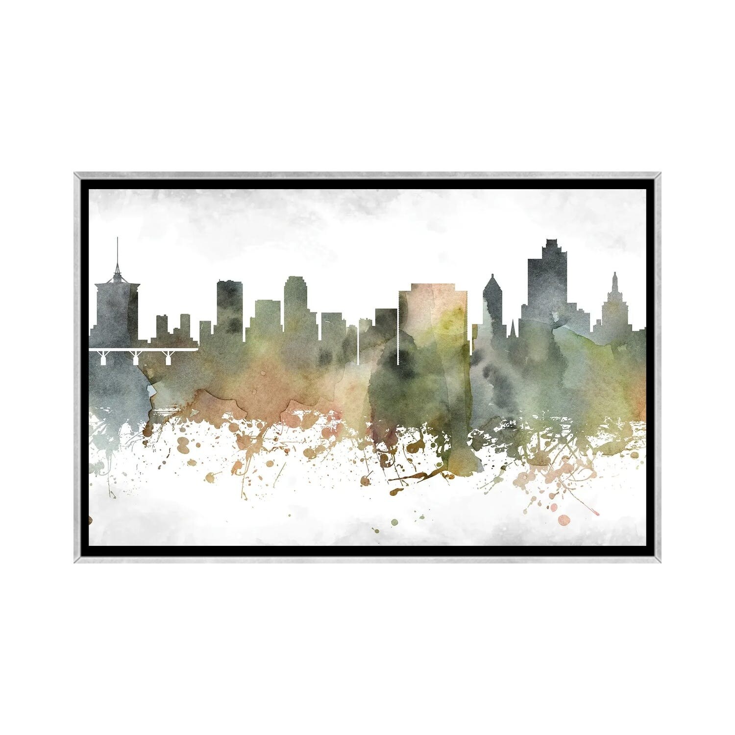 iCanvas "Dallas Colorful Watercolor Skyline" by WallDecorAddict Framed
