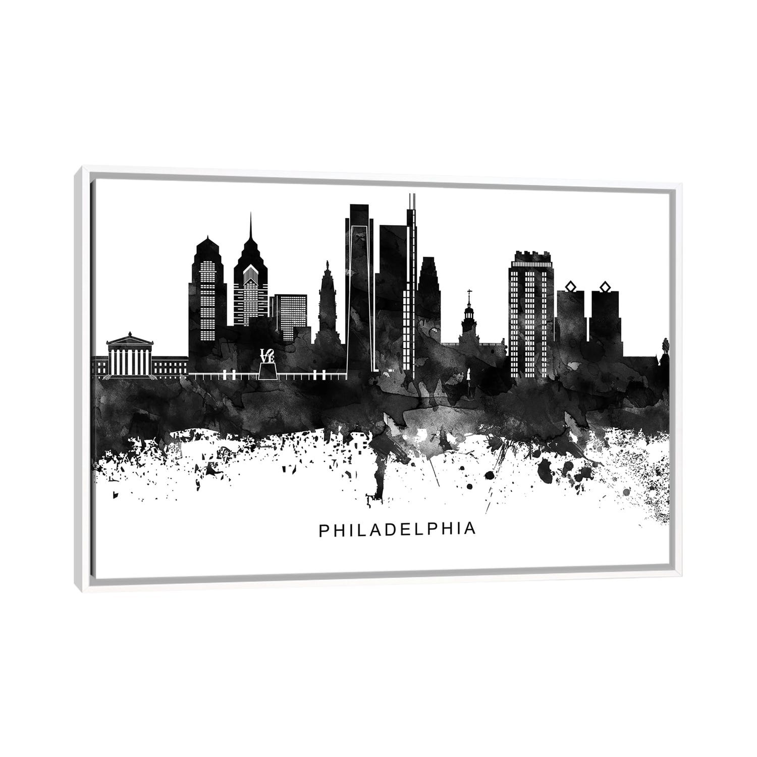 iCanvas "Philadelphia Skyline Black & White" by WallDecorAddict Framed Canvas Print