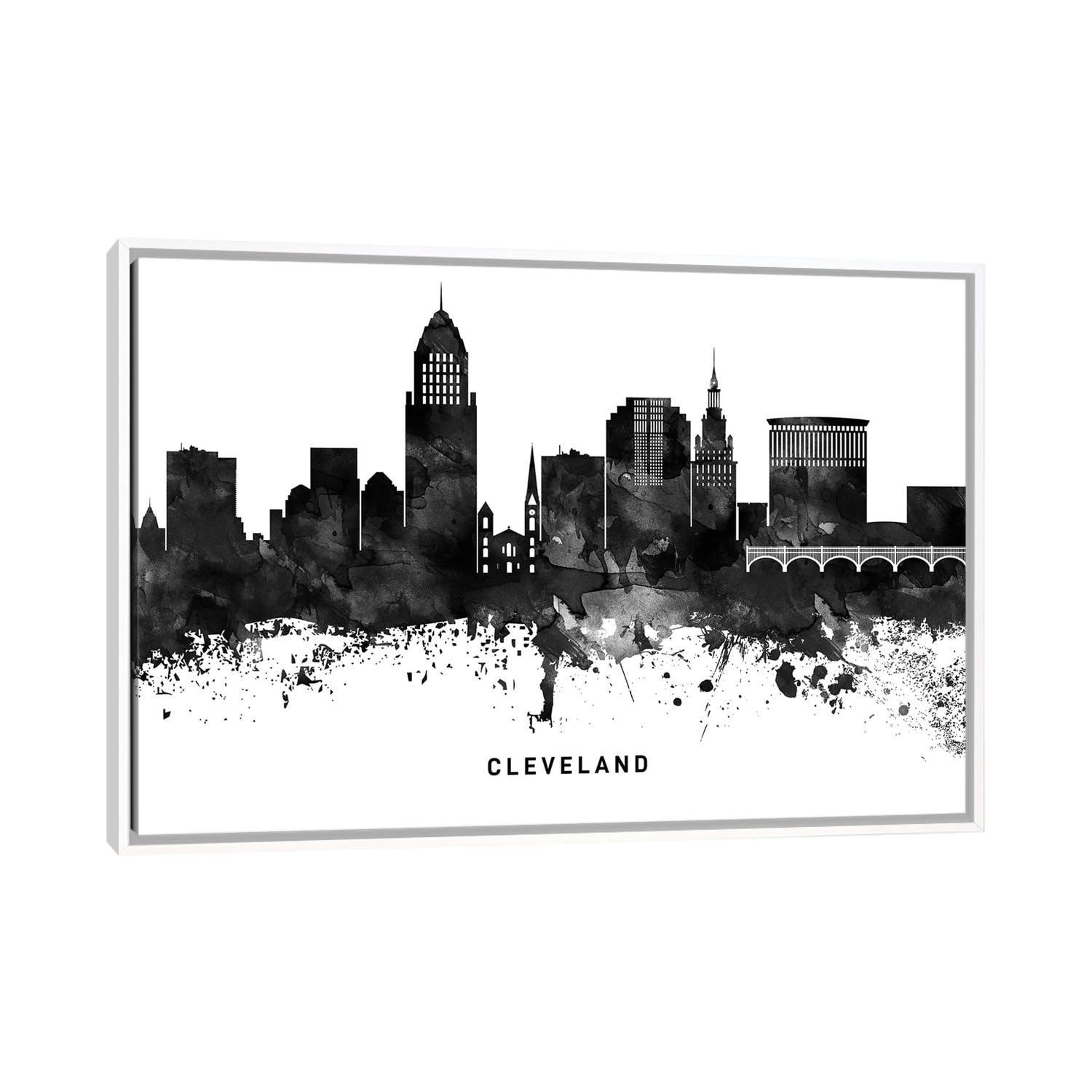 iCanvas "Cleveland Skyline Black & White" by WallDecorAddict Framed Canvas Print