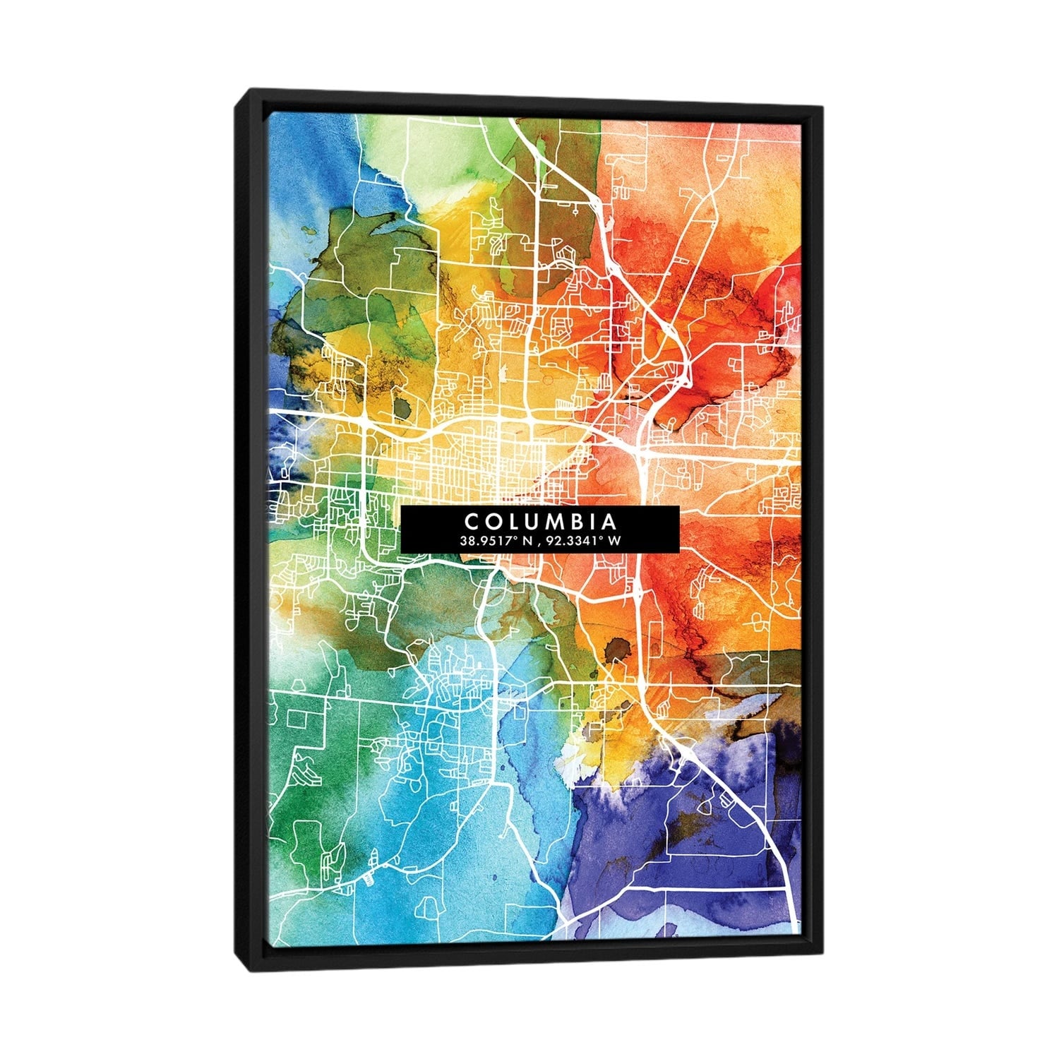 iCanvas "Columbia City Map Colorful Watercolor Style" by WallDecorAddict Framed Canvas Print