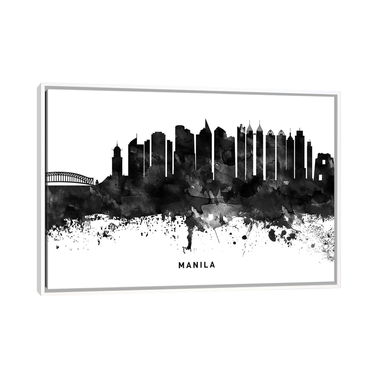 iCanvas "Manila Skyline Black & White" by WallDecorAddict Framed Canvas Print