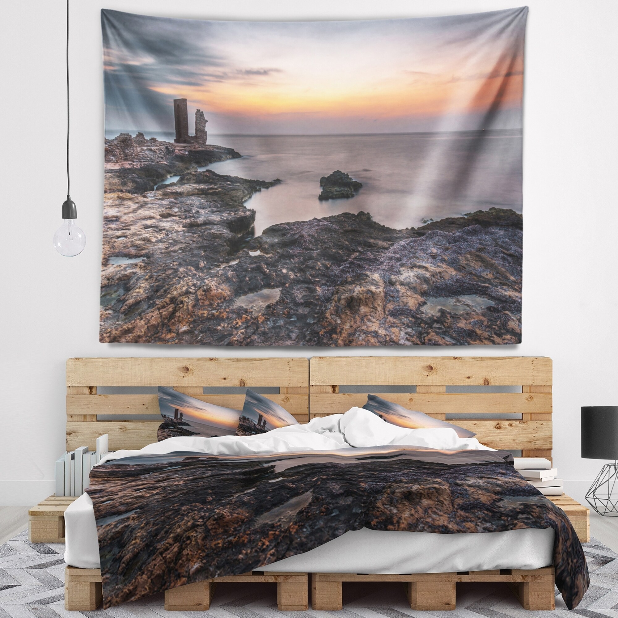Designart 'Dark Africa Beach with Ancient Ruins' Oversized Beach Wall Tapestry
