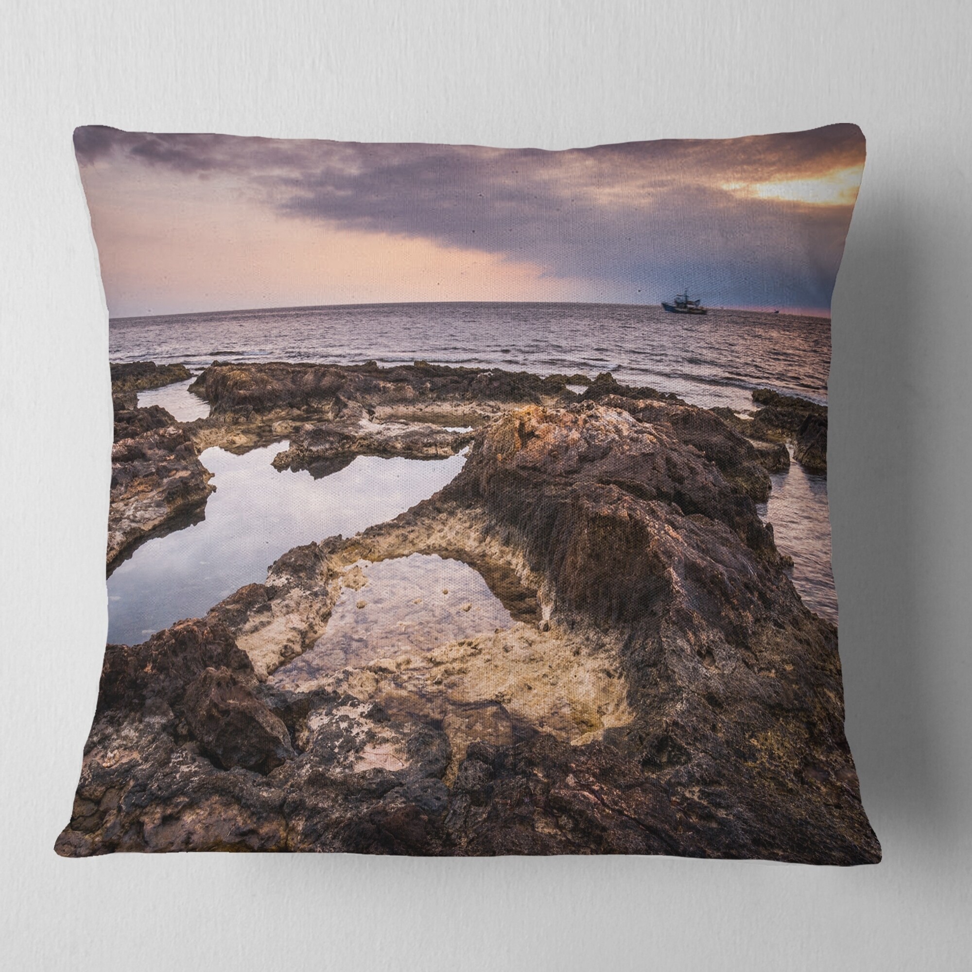 Designart 'Rough Rocky Coastline Africa' Oversized Beach Throw Pillow