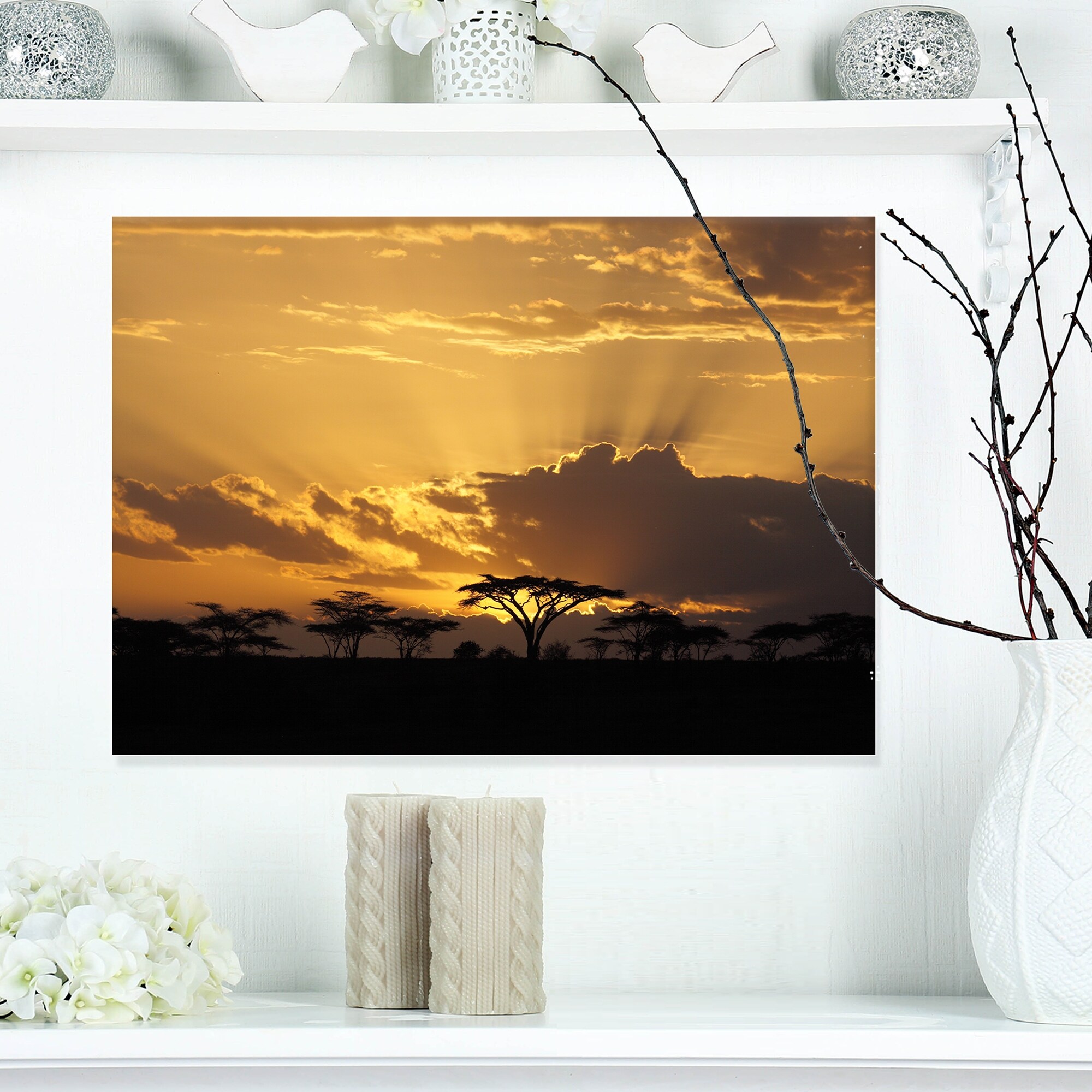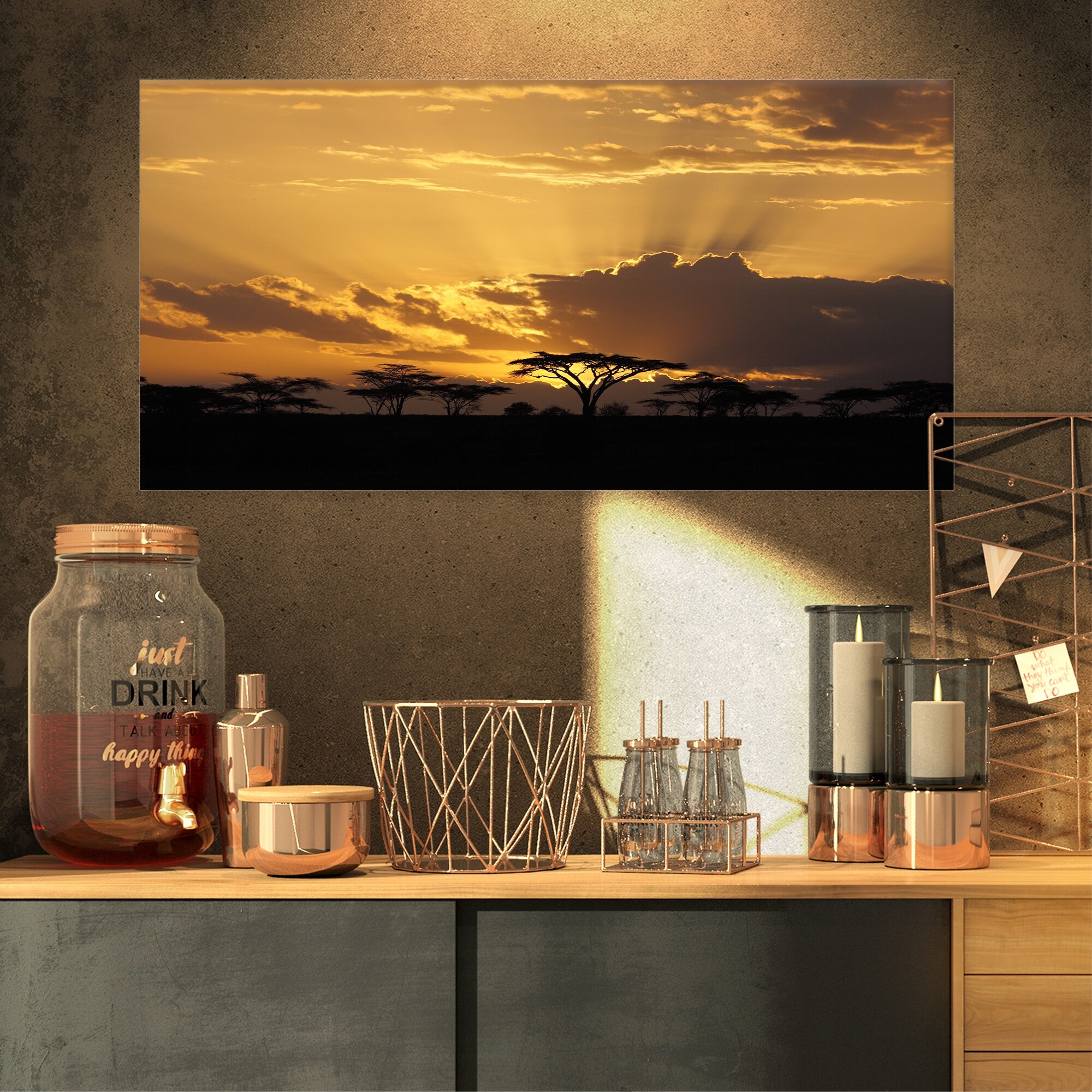 Designart "Sunset in Africa with Acacia Tree" Extra Large Landscape Canvas Art
