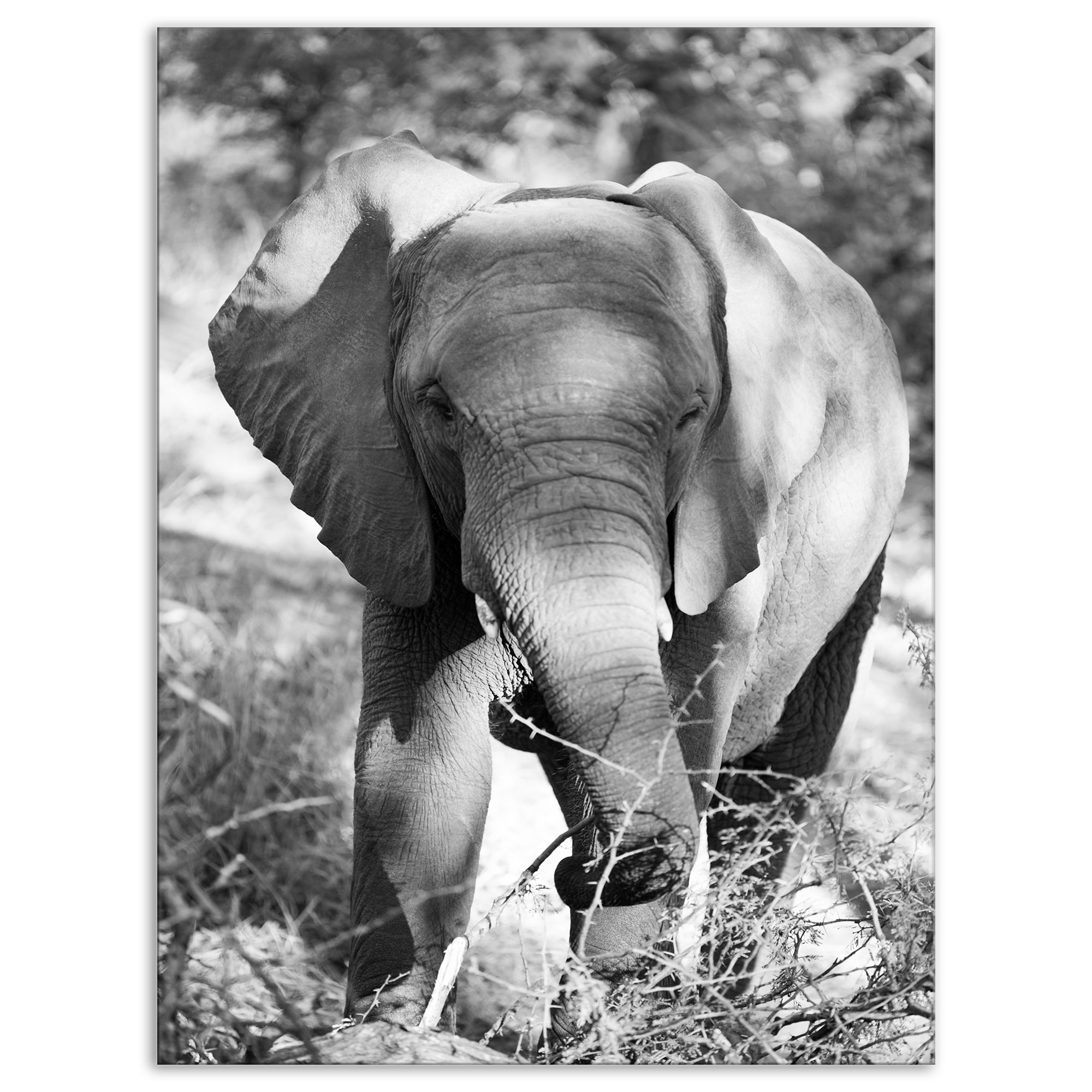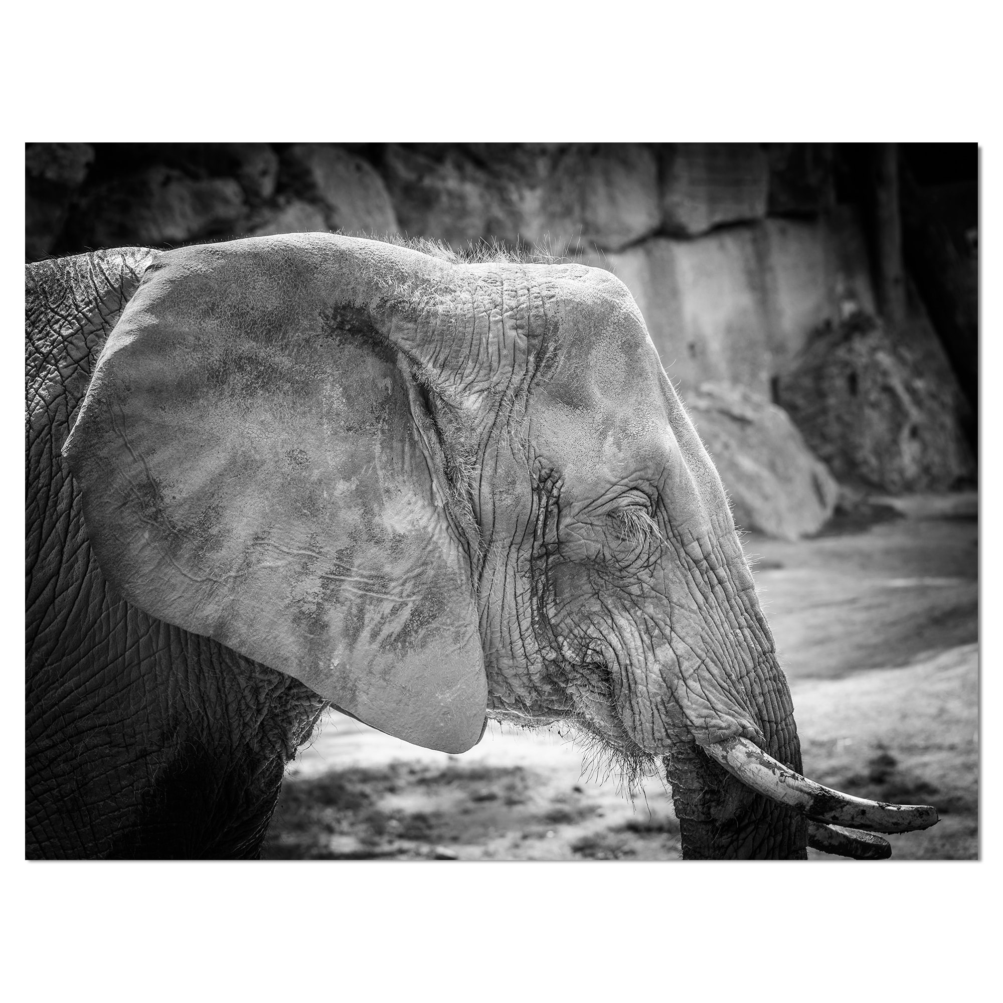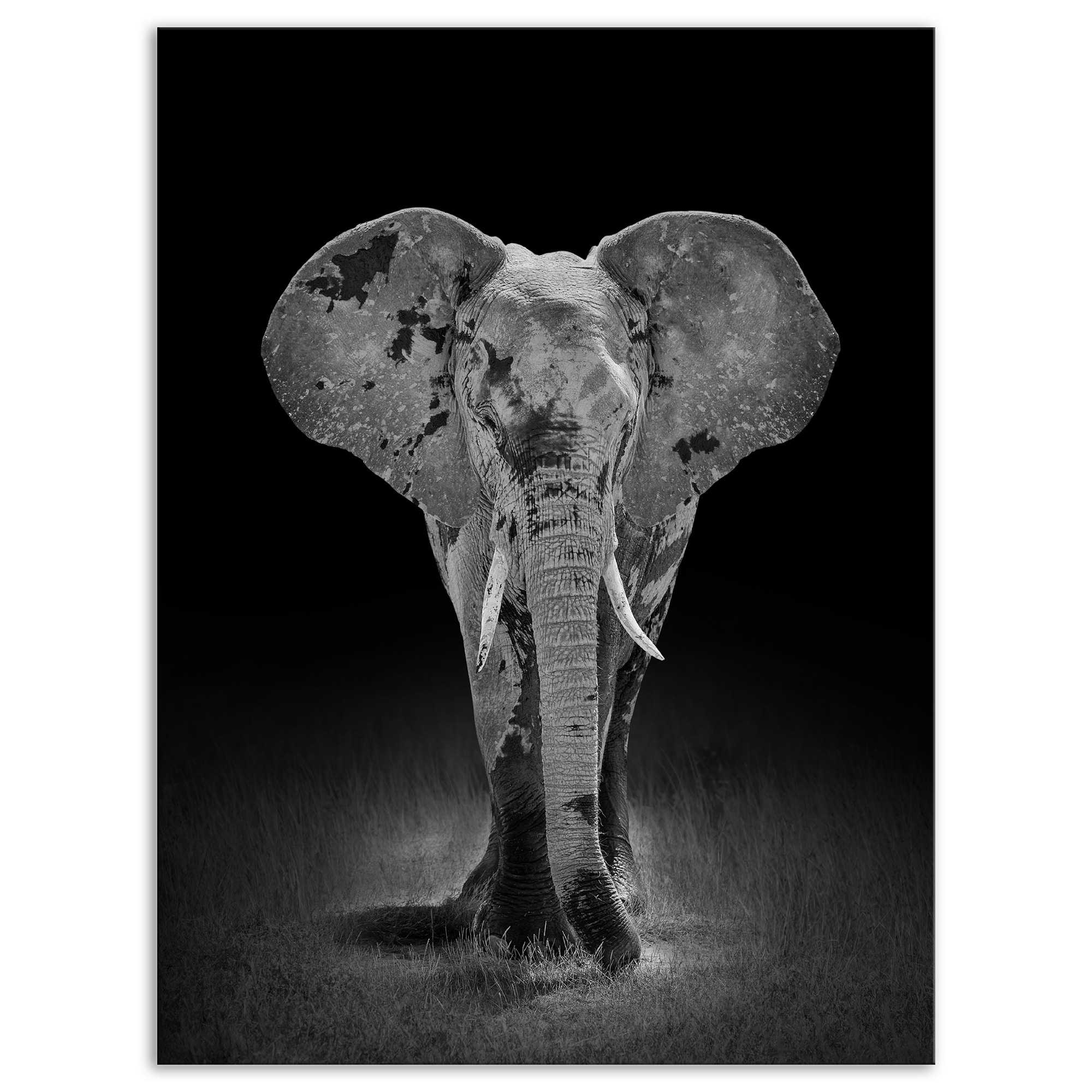 Designart "Black and white elephant" Africa Animals Print on Wrapped Canvas
