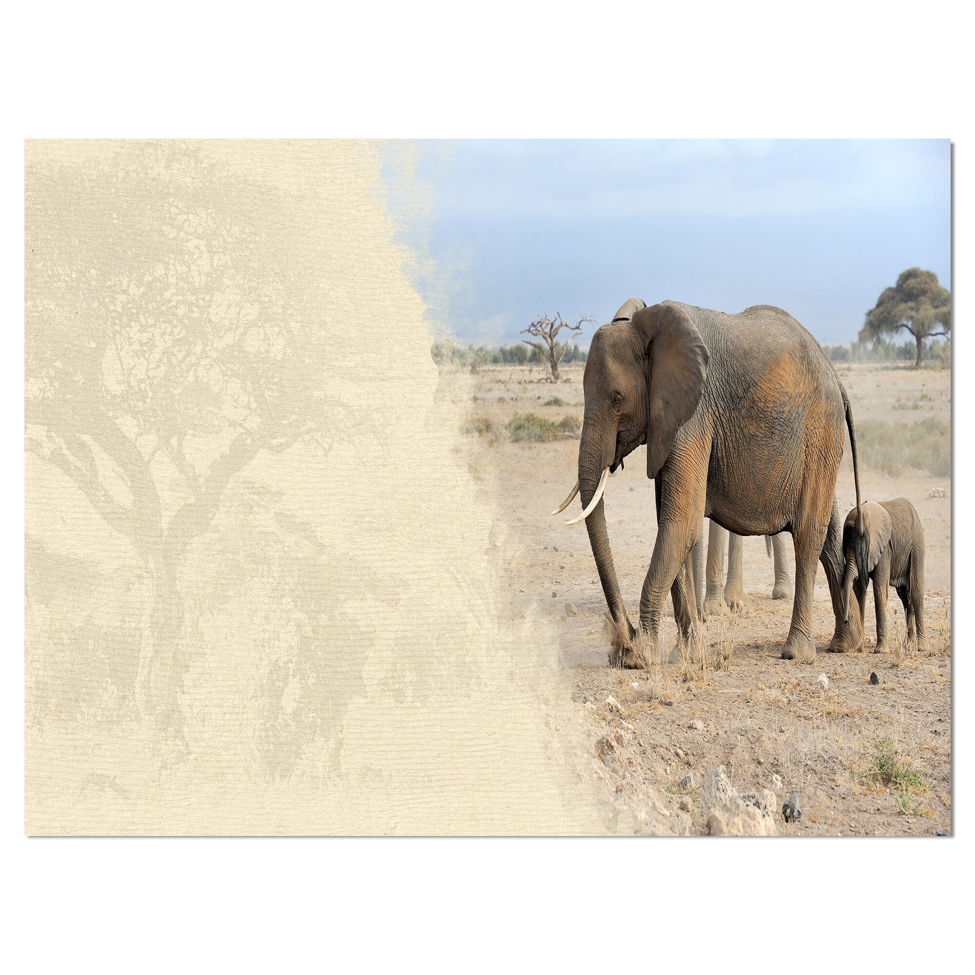 Designart "Monther and Child Elephant on textured paper" Africa Animals photography on Wrapped Canvas
