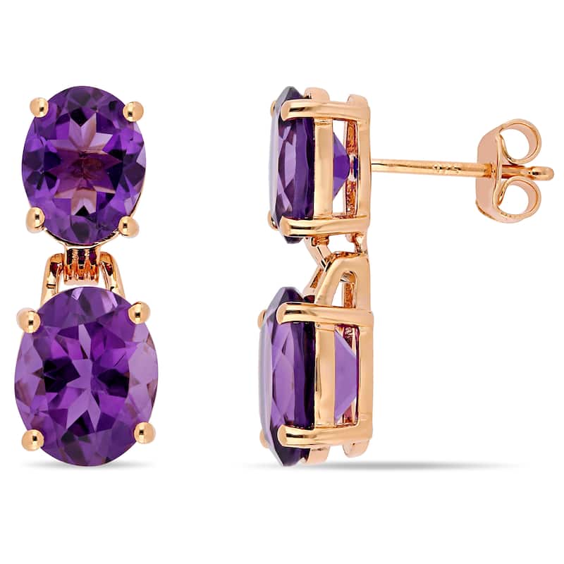 Miadora Rose Plated Sterling Silver 8 1/10ct TGW African-Amethyst Dangle Earrings