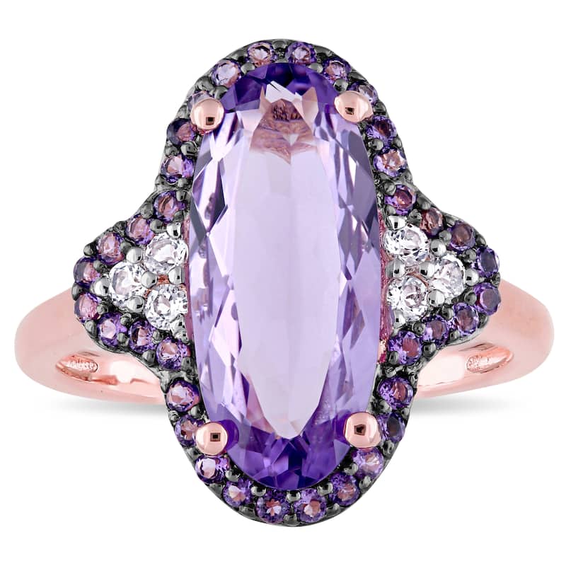 Miadora Rose Plated Sterling Silver with Black Rhodium Amethyst African-Amethyst and White Topaz Hal - Purple