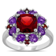 Miadora Sterling Silver Garnet and African-Amethyst Floral Cluster Ring