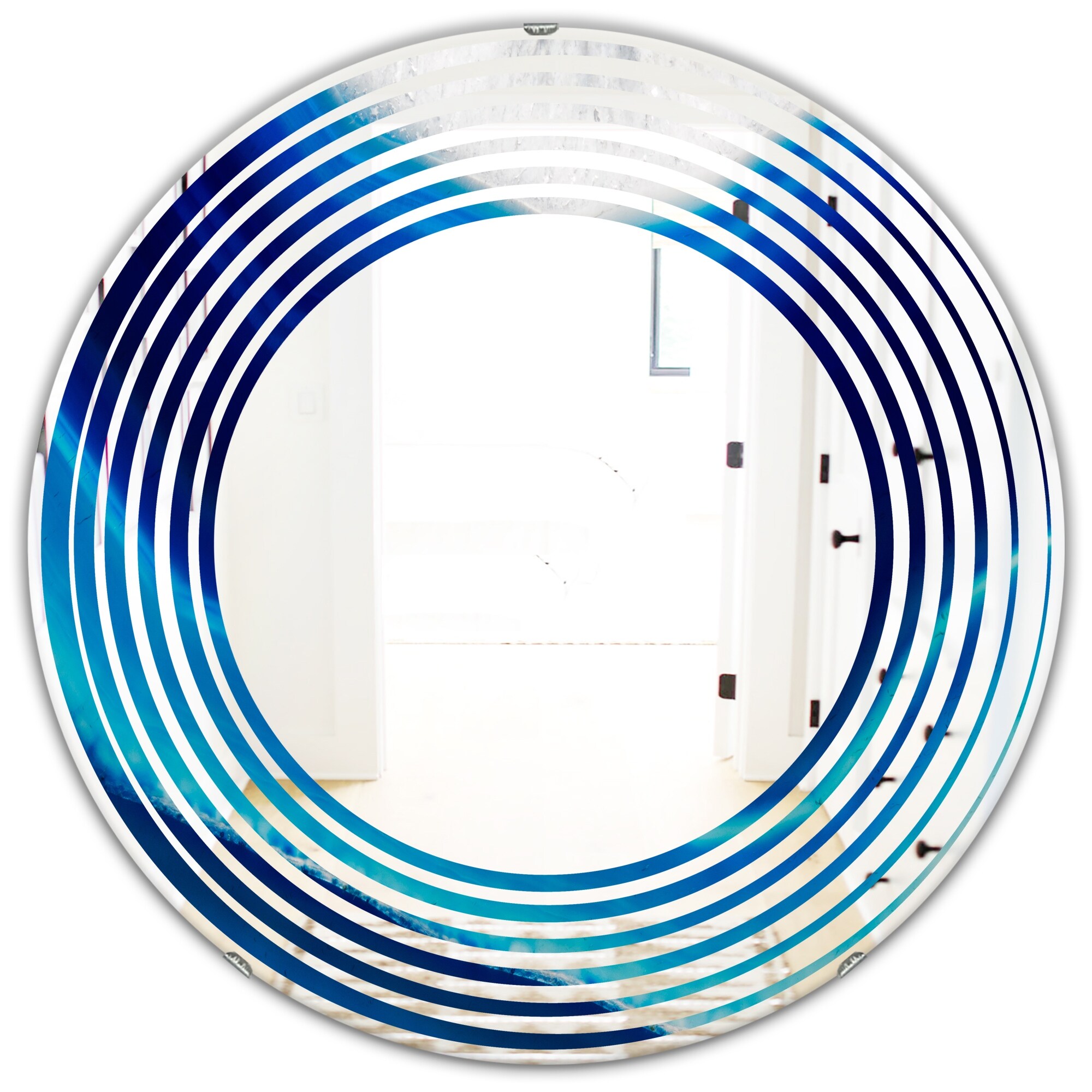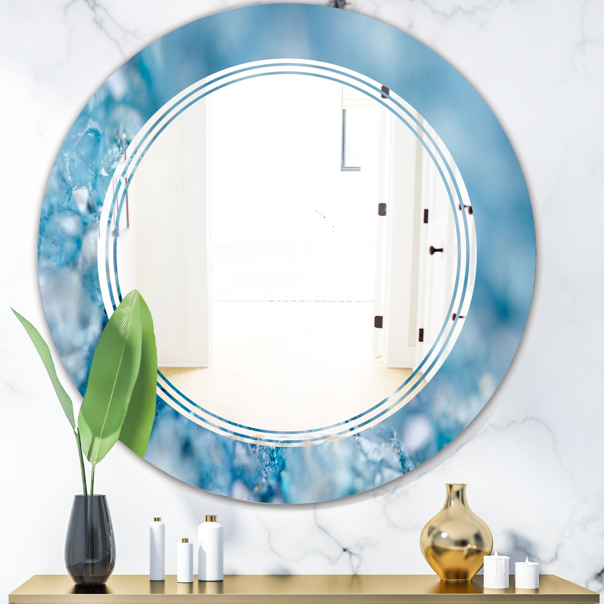 Designart 'Blue crystals Agate' Printed Modern Round or Oval Wall Mirror - Triple C