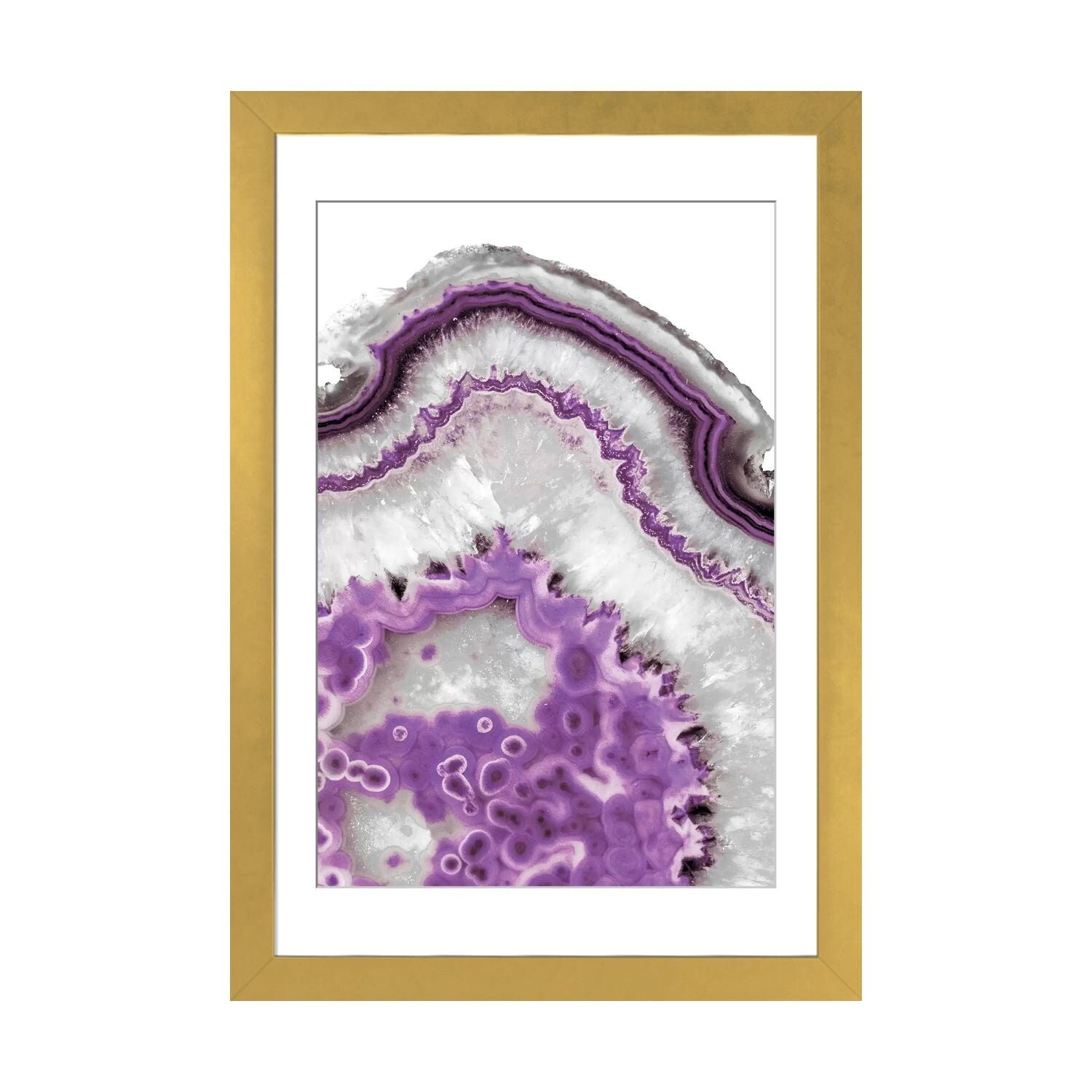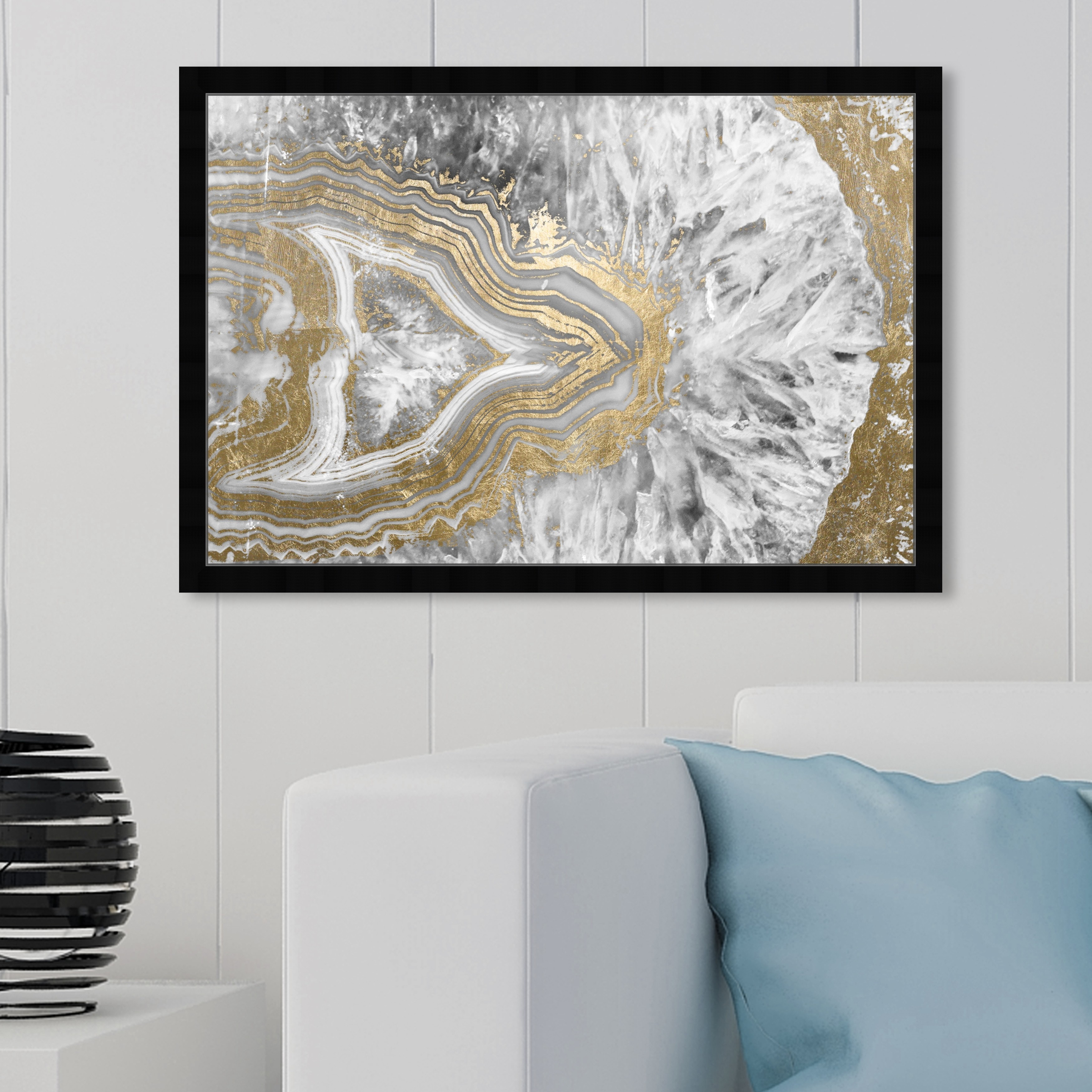 Oliver Gal 'Agate Geode Crystal' Abstract Framed Wall Art Prints Crystals - Gold, White