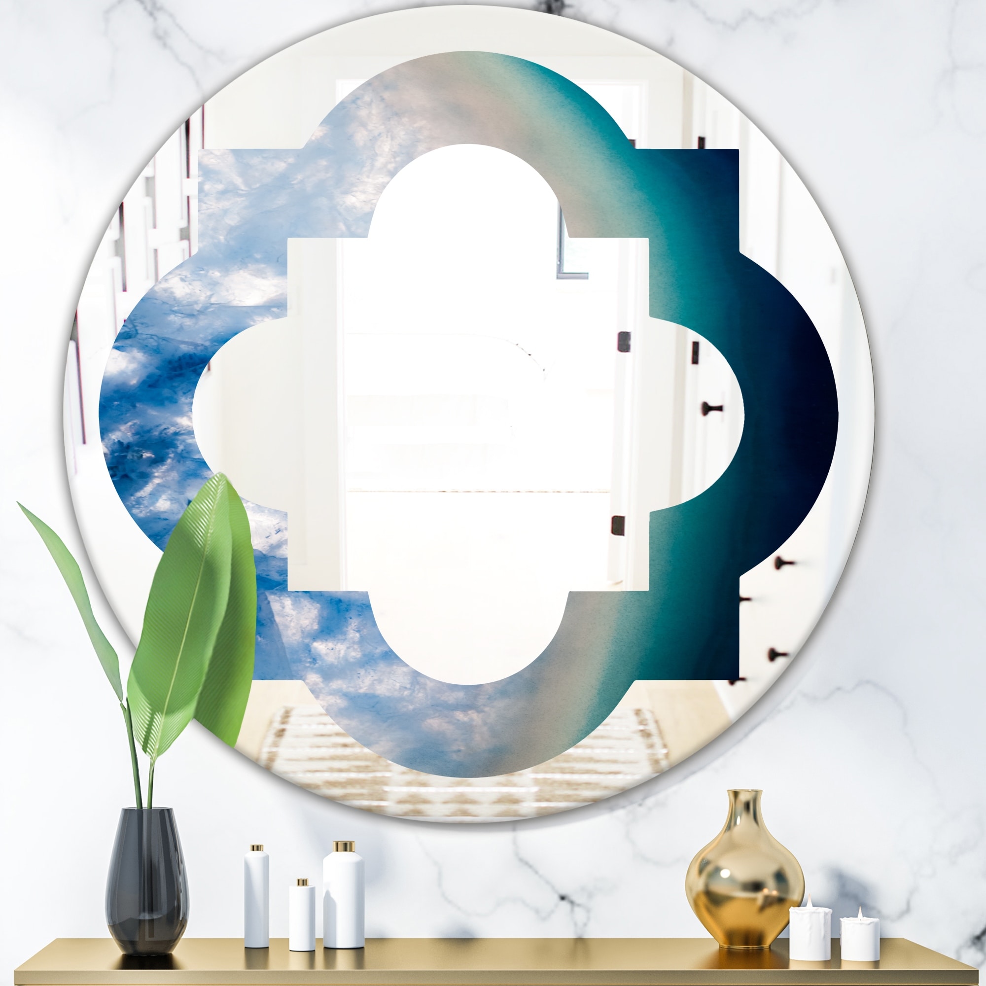 Designart 'Agate beautiful colorful slices and texture' Printed Modern Round or Oval Wall Mirror - Quatrefoil