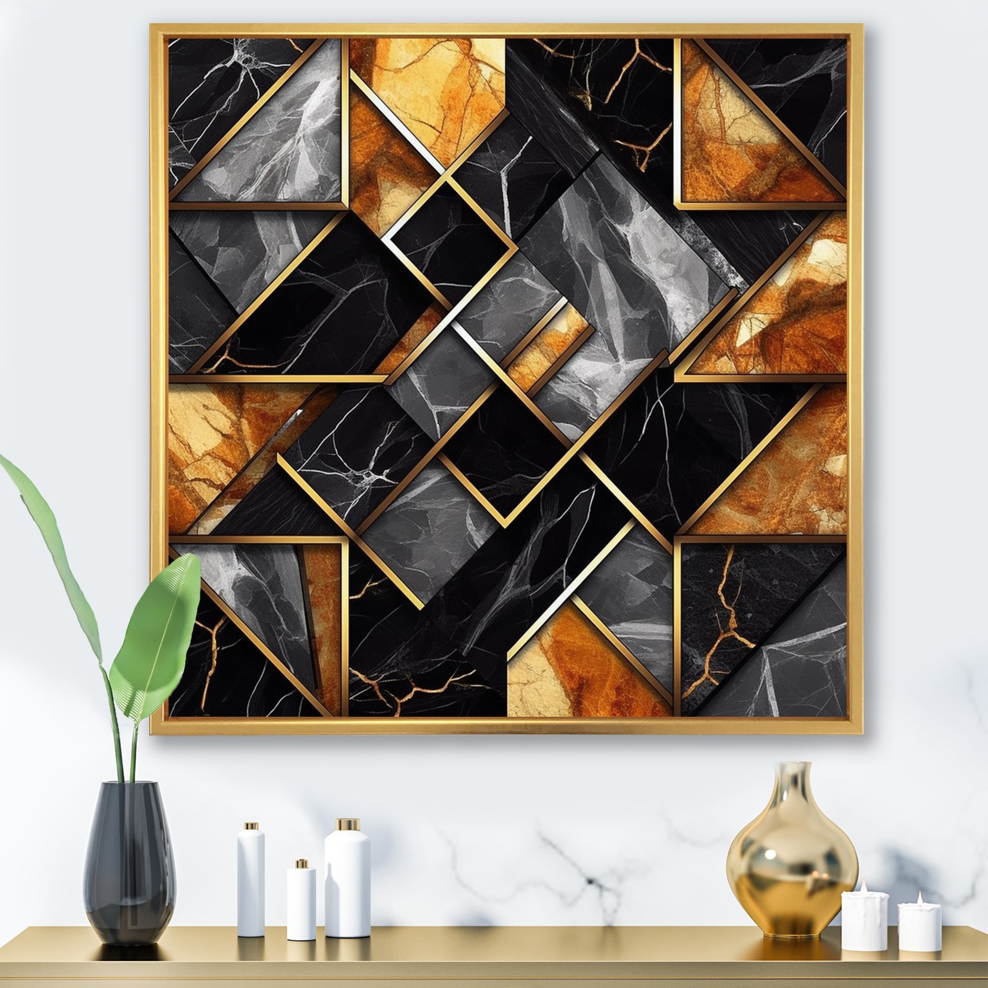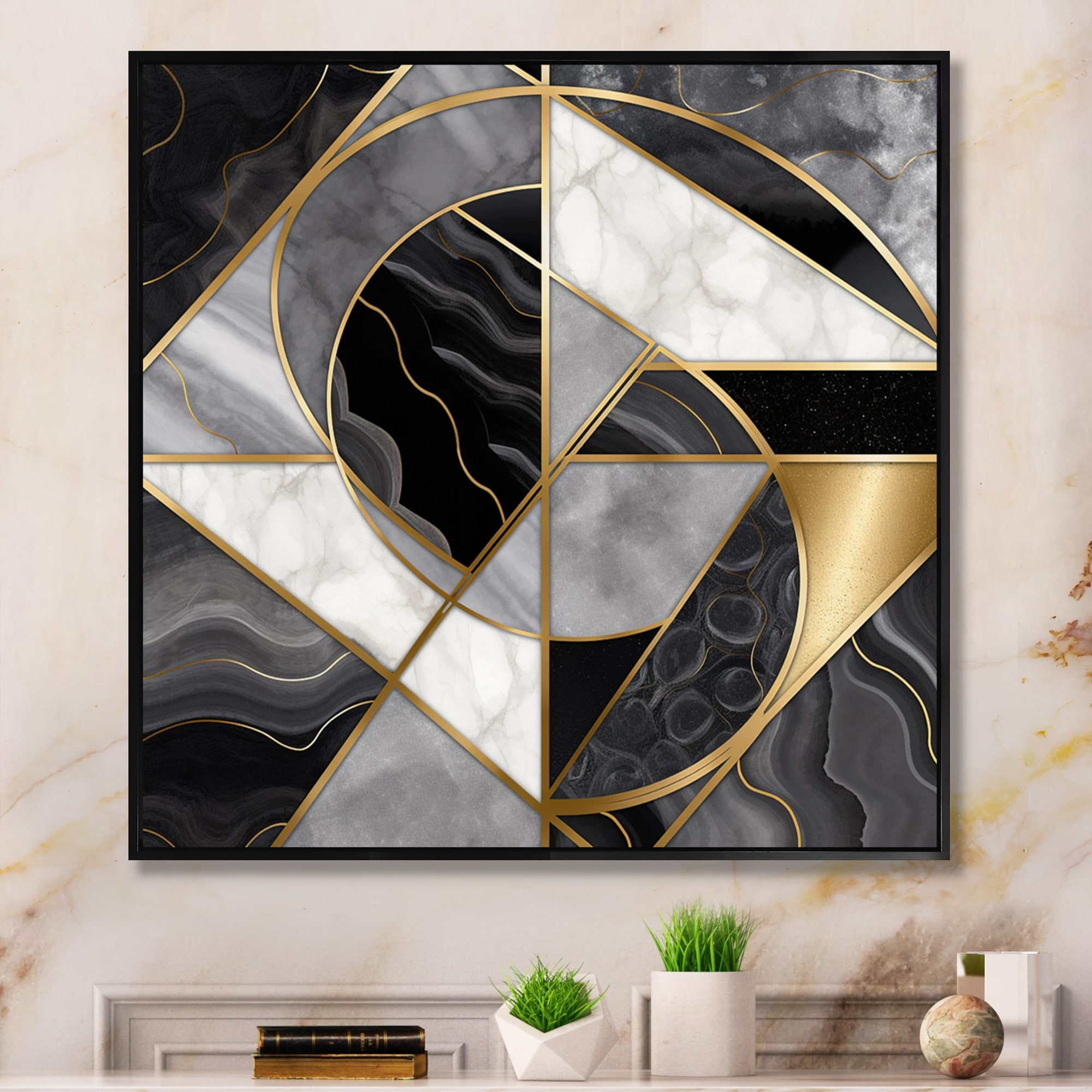 Designart "Marble Granite Agate With Touches of Gold XVII" Modern Geometric Framed Canvas Art Print