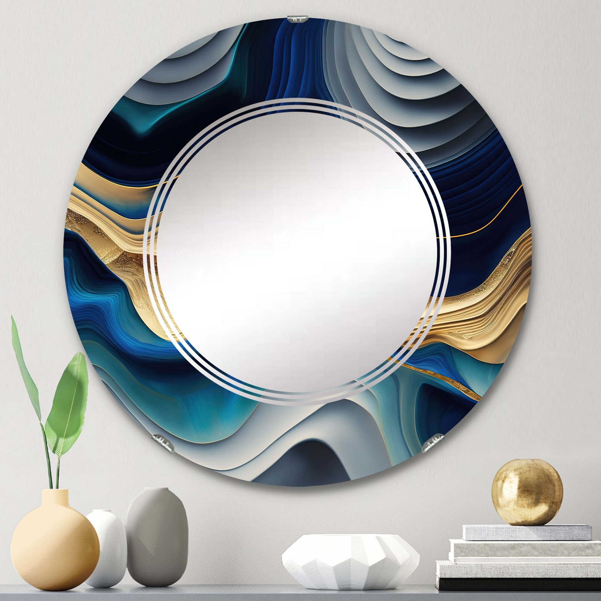 Designart 'Blue Agate Stone Design' Printed Modern Round or Oval Wall Mirror - Wave